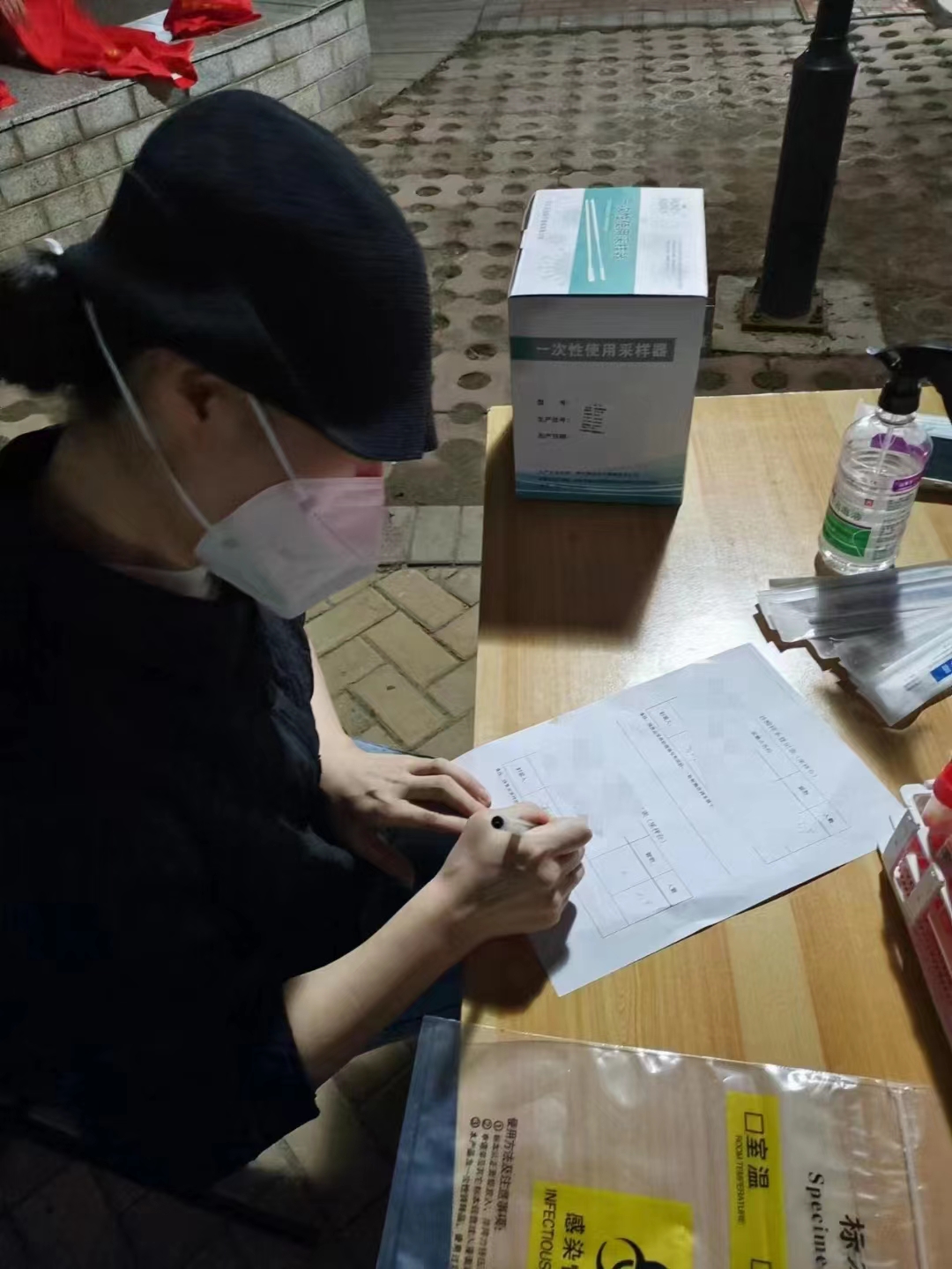 如今的曹琳已经成为了扫码的“熟手技工”,但是回想起10月15日,第一次扫码,她仍历历在目。当天,扫码员处于空缺状态。“我来吧。”身为党员的曹琳第一时间站出来,下载好软件,摸索着穿好防护服。“第一次没有经验,出现了一些小插曲,但是很快我调整了状态,并找到一些小窍门。”曹琳说,她在扫码时控制速度,减少居民在扫码和做核酸之间出现聚集情况。核酸采集结束后,她浑身都湿透了,手也被汗水泡发。