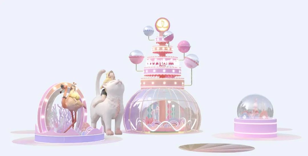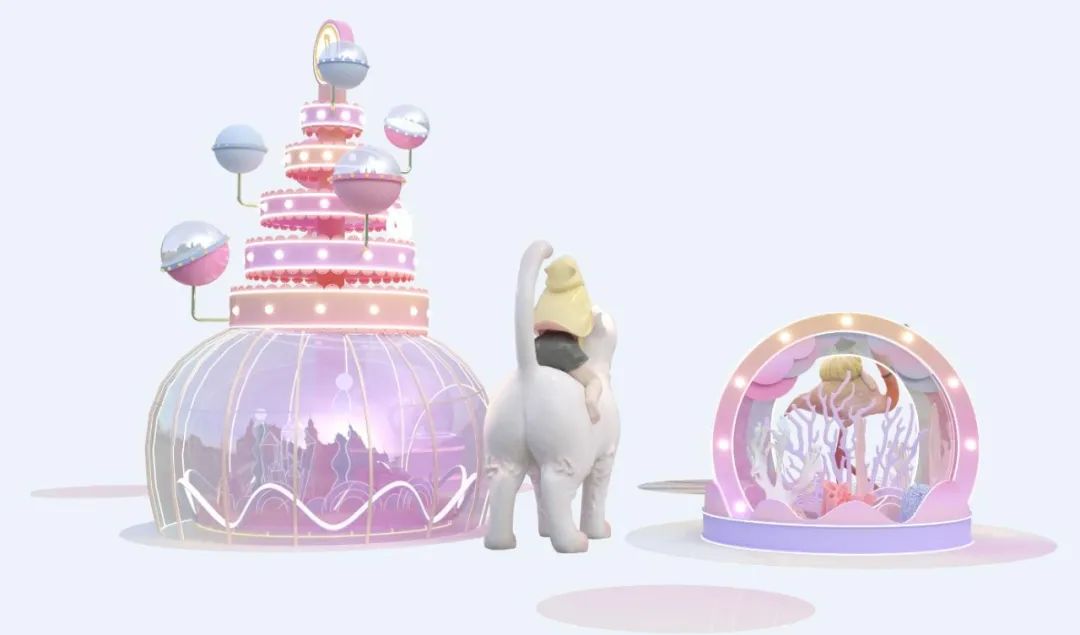 整个艺术展推出“白夜童话”两大梦幻打卡场景,以“奇幻秘境·造梦之旅”为主题,运用城堡、云朵、星空 等元素,并聚集了白夜童话系列经典款的“夜行独角兽”“晚安兔”“猫将军”“犀牛伙伴”等八大经典艺术形象。童话中的“神兽精灵”们分散在商场内外两大沉浸式梦幻场景,或坐或站,或静或闹等待与其互动,一齐同步探寻这座城市之心宝藏之地。