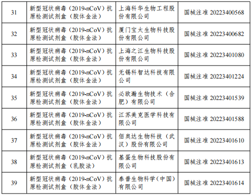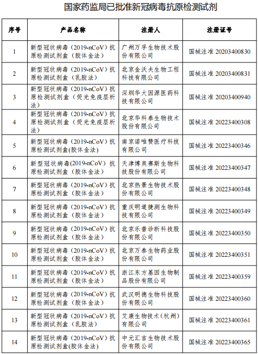 截至目前,国家药监局已批准39个新冠病毒抗原检测试剂产品。药品监督管理部门将加强相关产品上市后监管,保护患者用械安全。