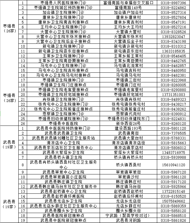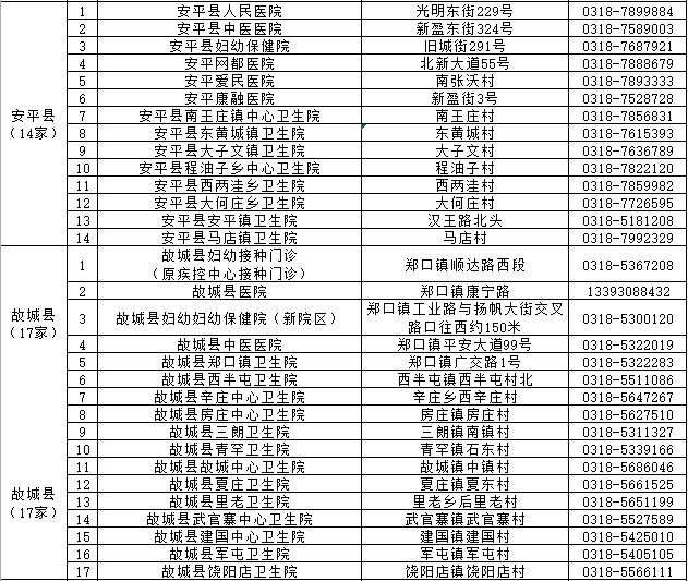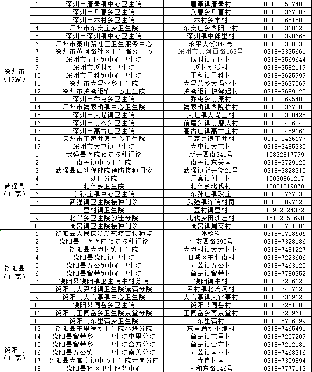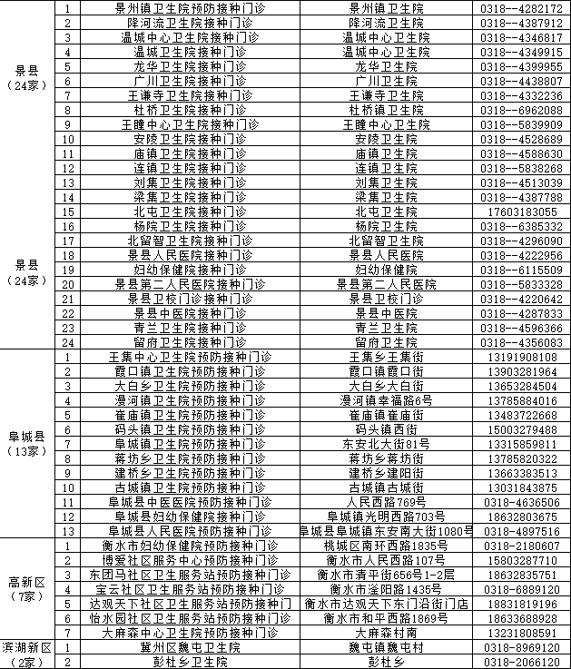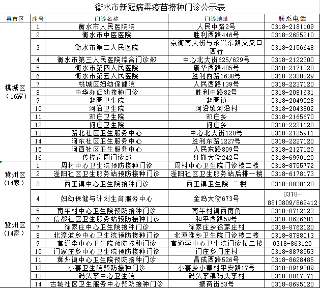 附件:衡水市新冠病毒疫苗接种门诊公示表