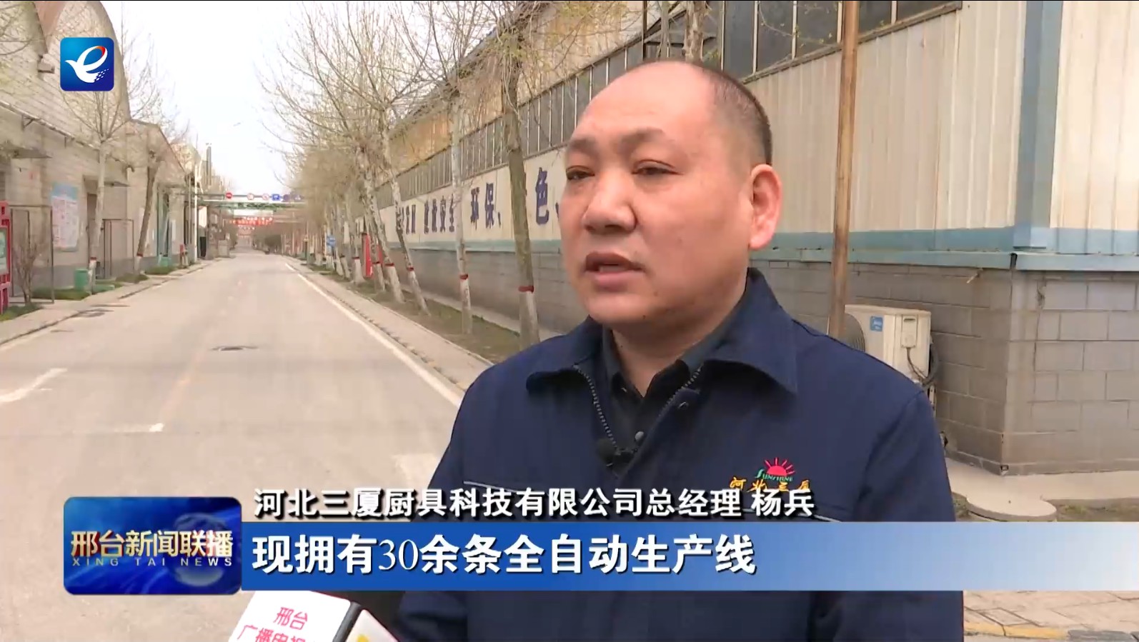 【河北三厦厨具科技有限公司总经理 杨兵】公司积极实施智能,绿色制造,现拥有30余条全自动生产线,企业产能提升了30%。同时,我们公司已研发76款新产品投入市场,注册17个自主品牌,国内市场占比由10%提高到15%,企业发展势头越来越好。