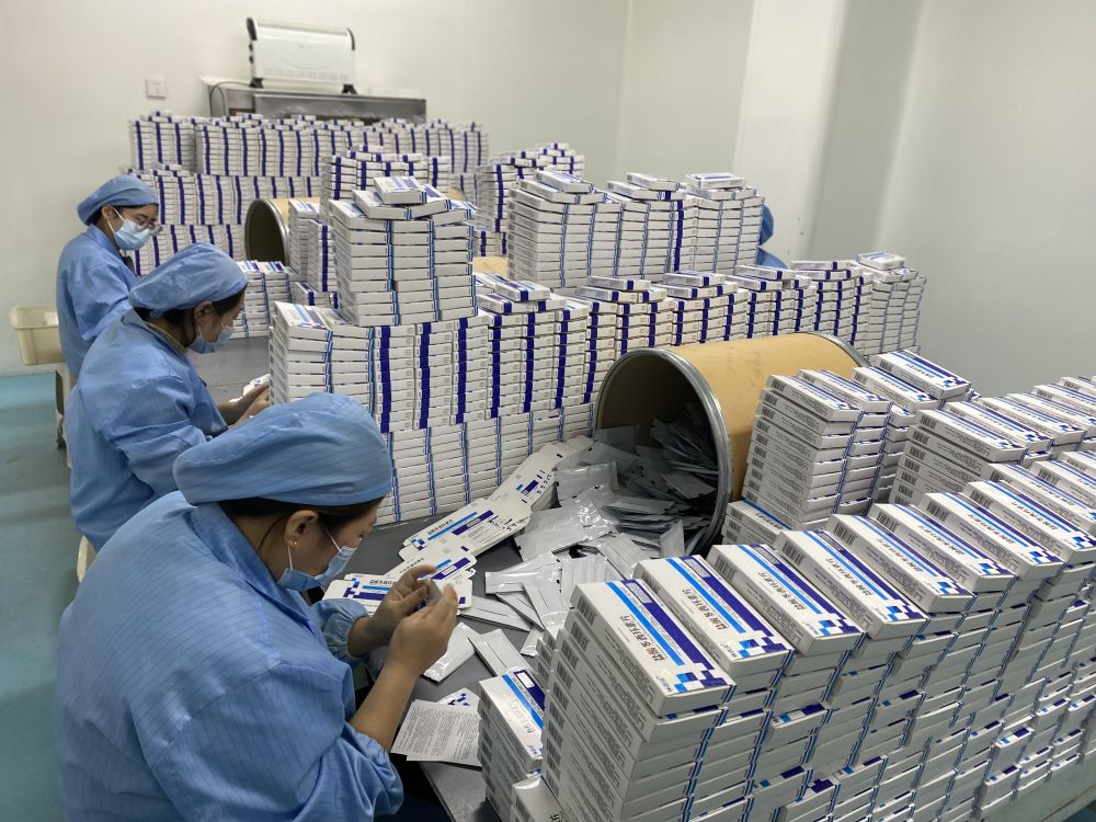 河北东风药业有限公司的工人们正在进行药品外包装工作。(受访单位供图)