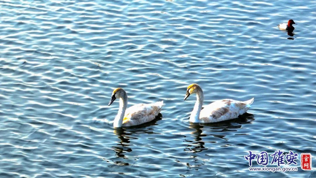 看,全身羽毛洁白、脖颈细长,前额有一块瘤疣的突起,这是在我国总数不超过3000只的珍稀鸟类疣鼻天鹅,它们在白洋淀水面上觅食游动的影像,前不久被记录了下来。