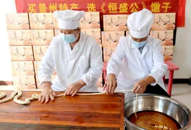 景县馓子一直沿用传统手艺进行加工制作,面团被反复叠、拉、搓、盘,最后成为一根到底的细面在油中浸泡,待其充分醒发开始炸制,炸好的馓子色泽金黄、口感酥脆,深受人们喜爱。2015年,景县“恒盛公”馓子传统制作技艺入选衡水市市级非物质文化遗产名录。