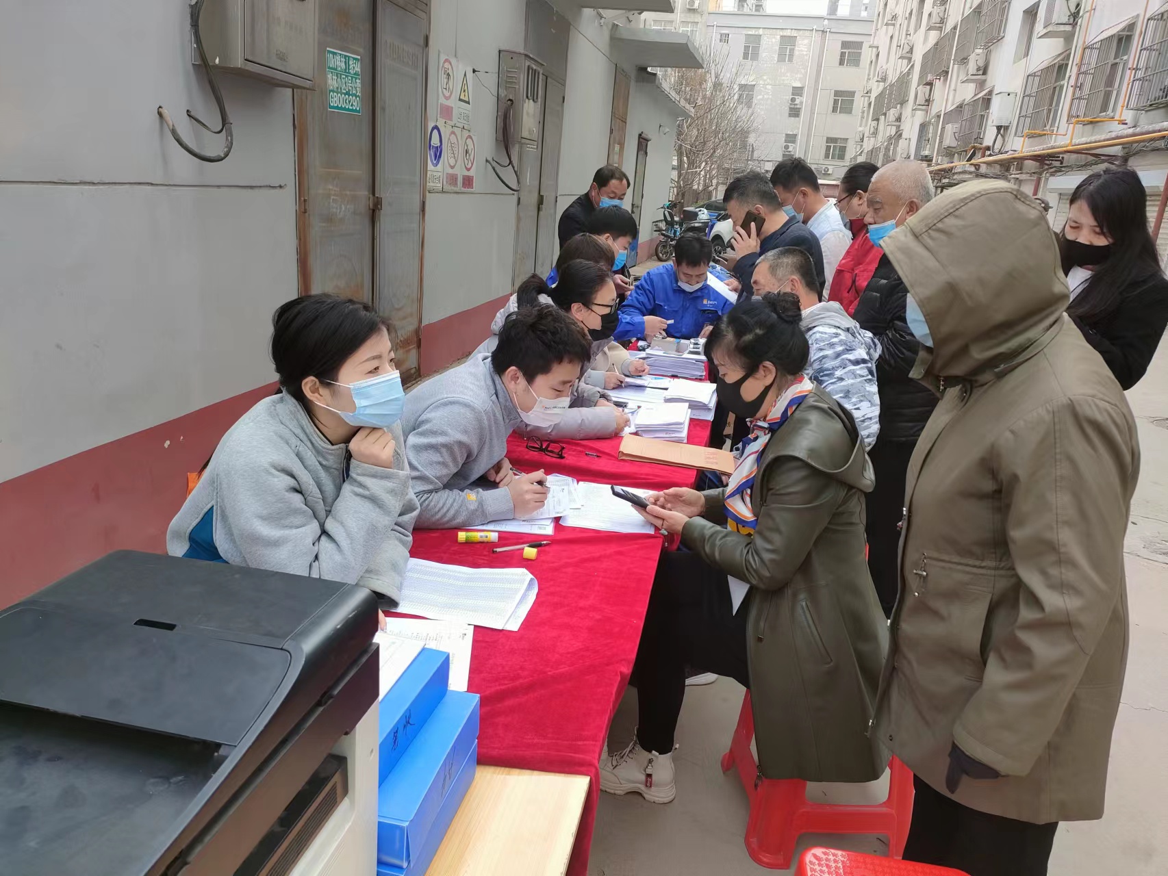 燃气公司工作人员正在接受居民咨询。