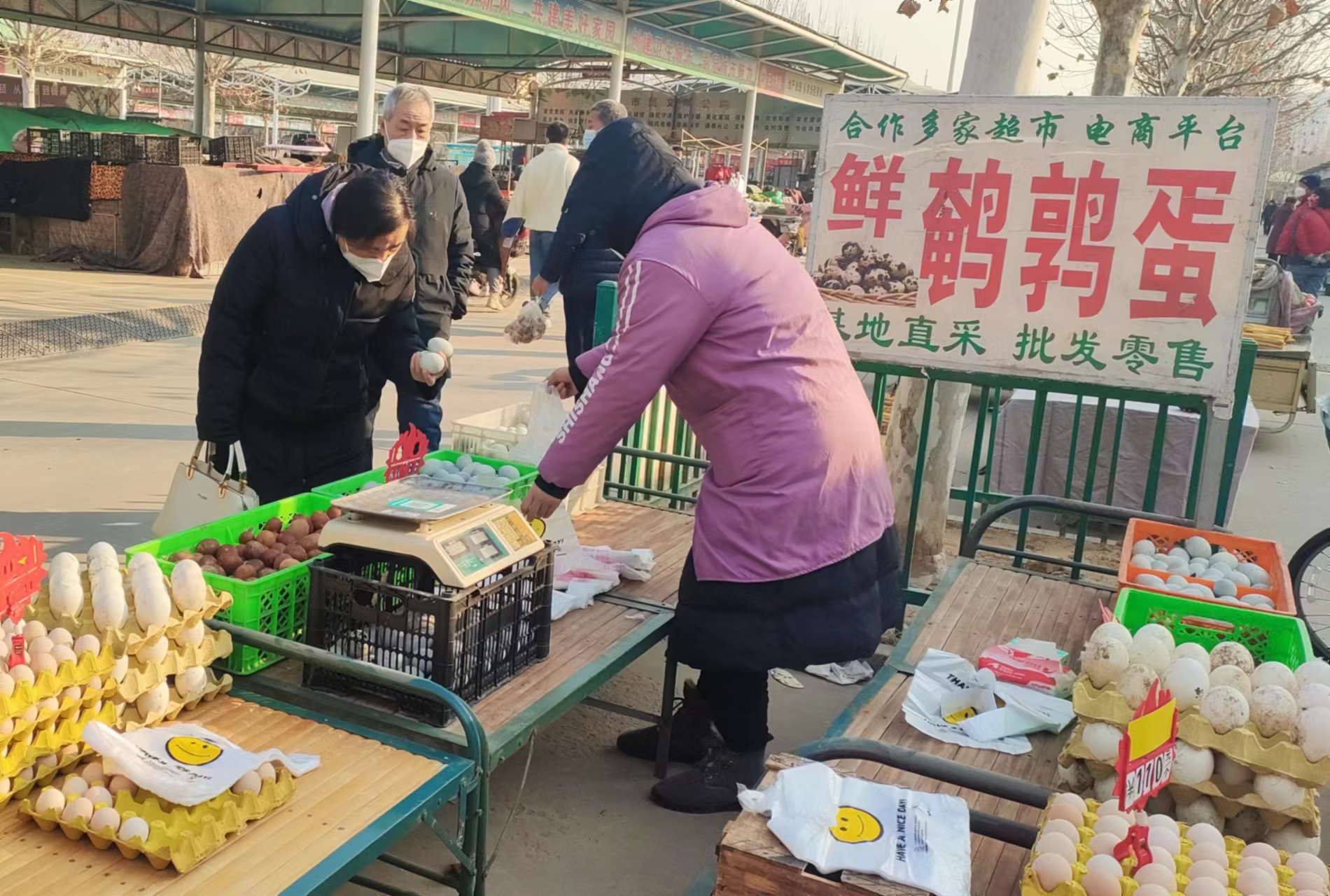 “好久没买鹌鹑蛋了,你家腌制的鹌鹑蛋好吃,给我来二斤!”在一售卖蛋品和衡水特产的摊位前,记者看到前来选购商品的市民络绎不绝,多数顾客会和摊主像老友般寒暄一番。“看着人来人往的市民买到了实惠和心仪的商品,特别高兴和欣慰。”摊主徐海阔介绍,昨天接到市场重新开业的消息后,她很开心,便准备了充足的货品,以供顾客选购。“早晨遛弯时,看着市场开门了,就进来转了转,早市上的菜种类多又新鲜,还能货比三家,很划算。”不仅是摊主心情愉悦,来逛早市的市民陈大爷说,早市关闭的这些日子,买菜只能到附近的小超市,品种少、价格贵,还经常买不到想吃的水果蔬菜。现在,早市回归了,新鲜的果蔬一应俱全,给人一种满足感,即使不买,看一看也觉得心情好。