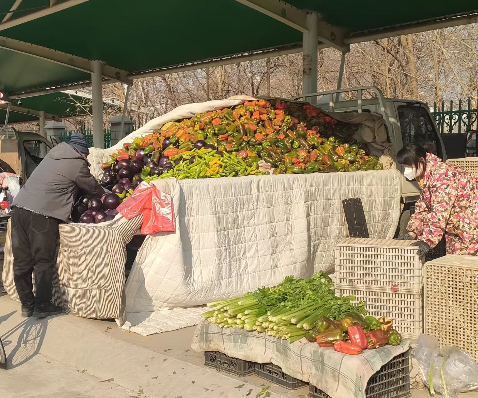 “新拉来的韭菜,茴香,倍儿新鲜!”