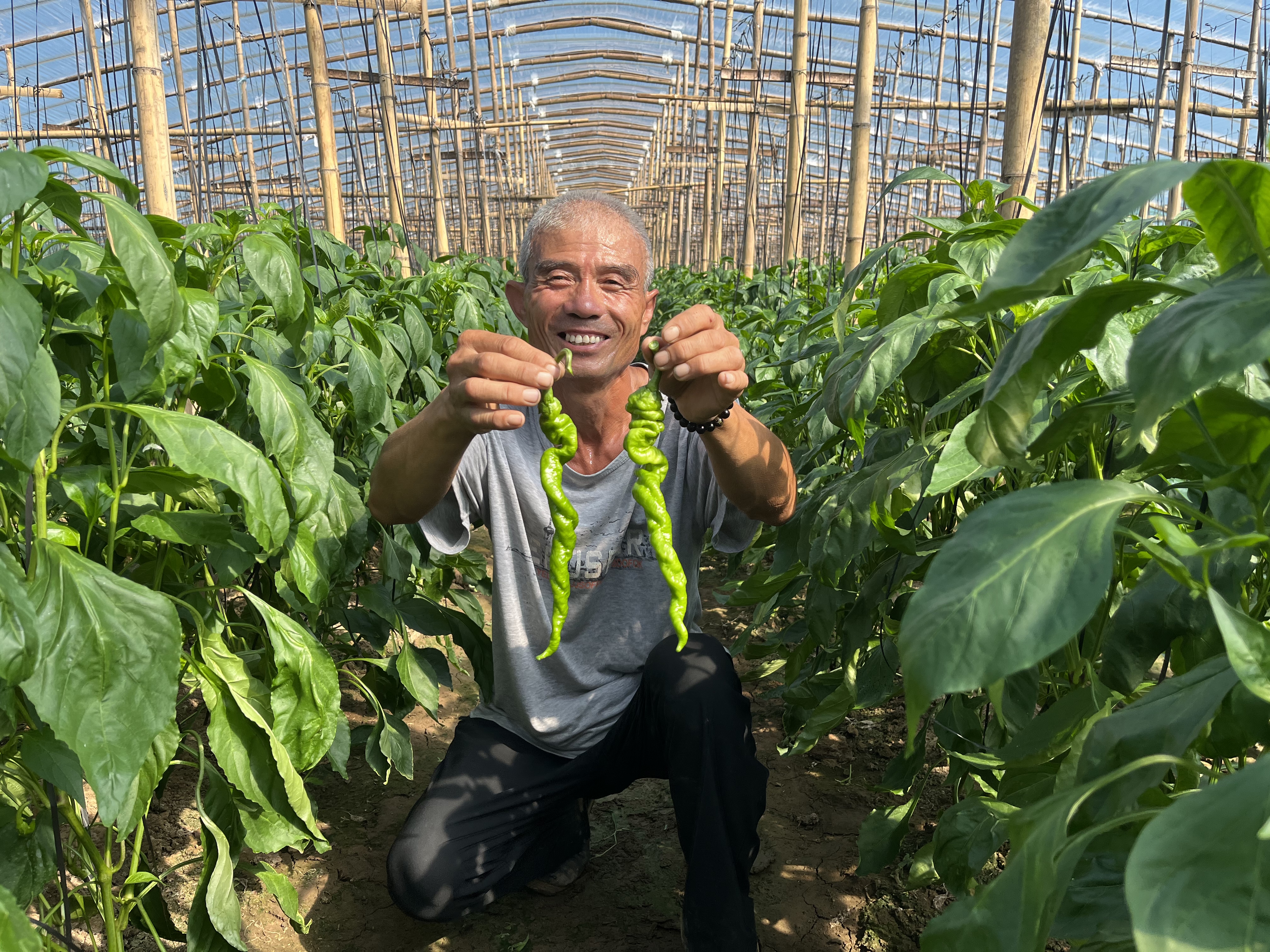 文志合满面笑容地介绍,这棚“油蟠九”蟠桃占地3亩多,已是第五年结果。他种桃树十几年了,原来是露天种,在省市专家的指导下,2022年他直接为桃树扣上大棚,引进现代化的灌溉、施肥、控温、授粉等技术,既提高了产量,又提升了质量,还卖出好价钱。2024年他打算再发展一个高标准温室大棚,争取一棚蟠桃增产5千斤。