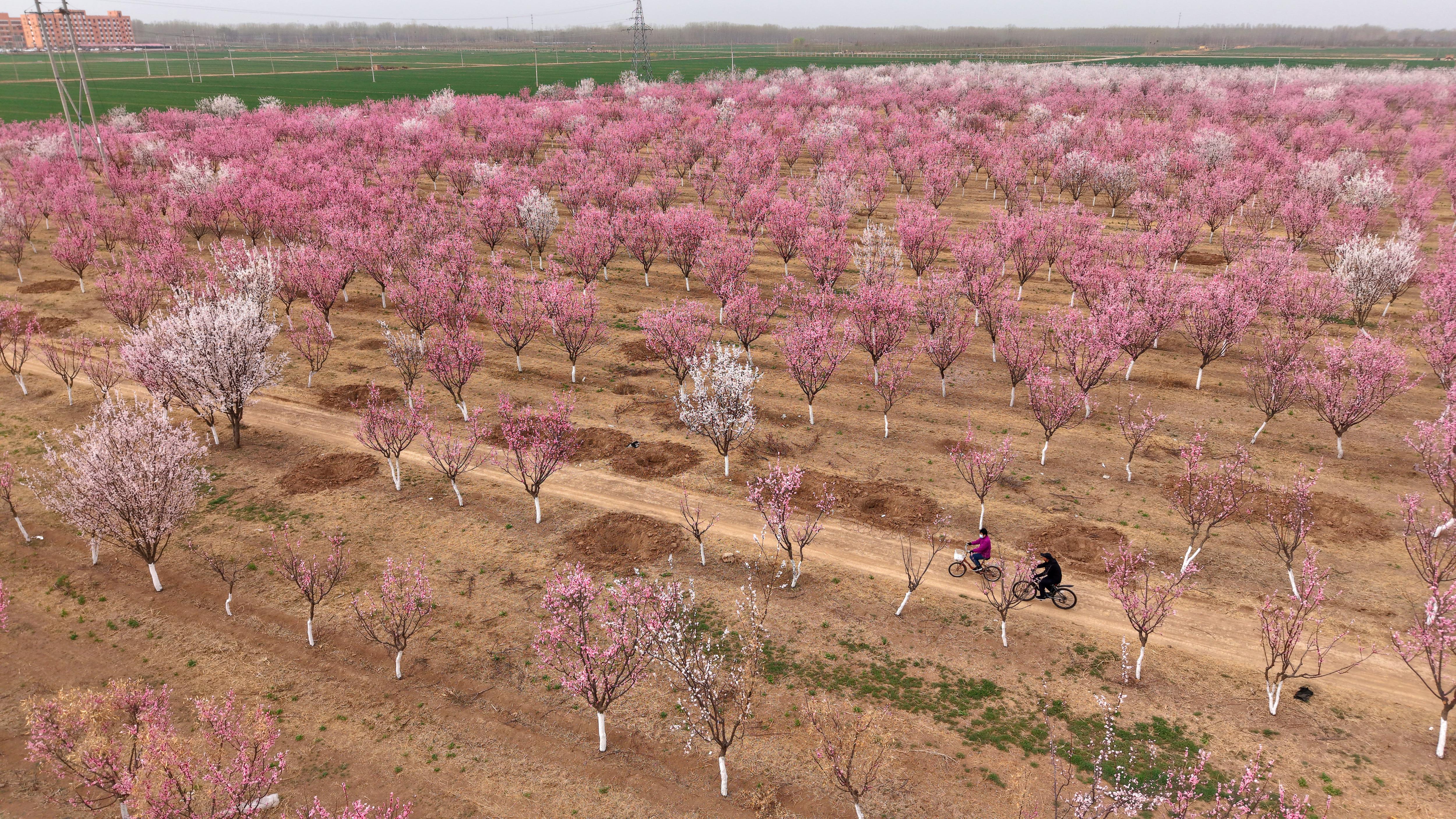 衡水湖畔:山桃花盛放 吸引市民踏春赏景
