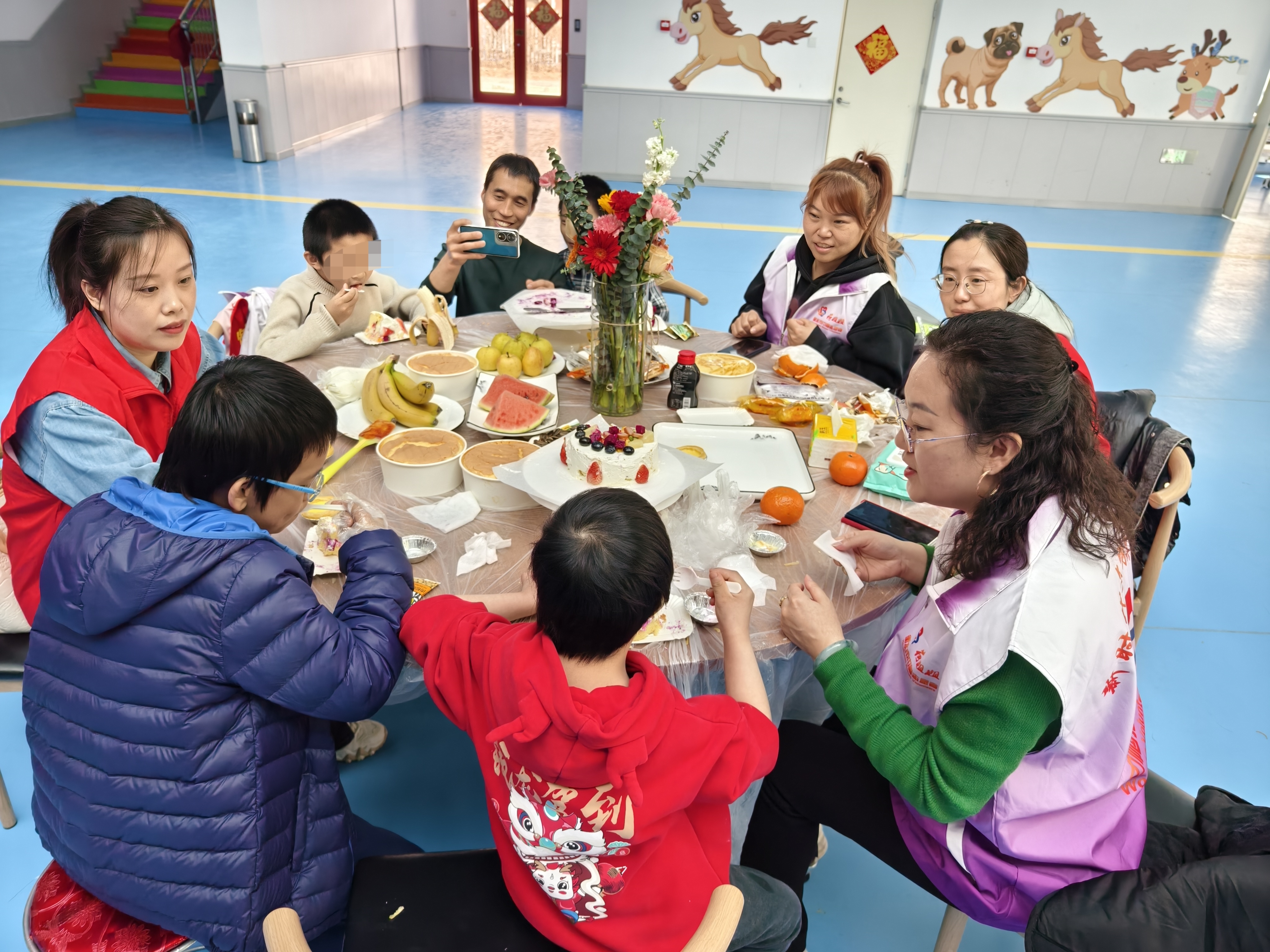 未检干警陪伴小朋友涂鸦。高娜 摄