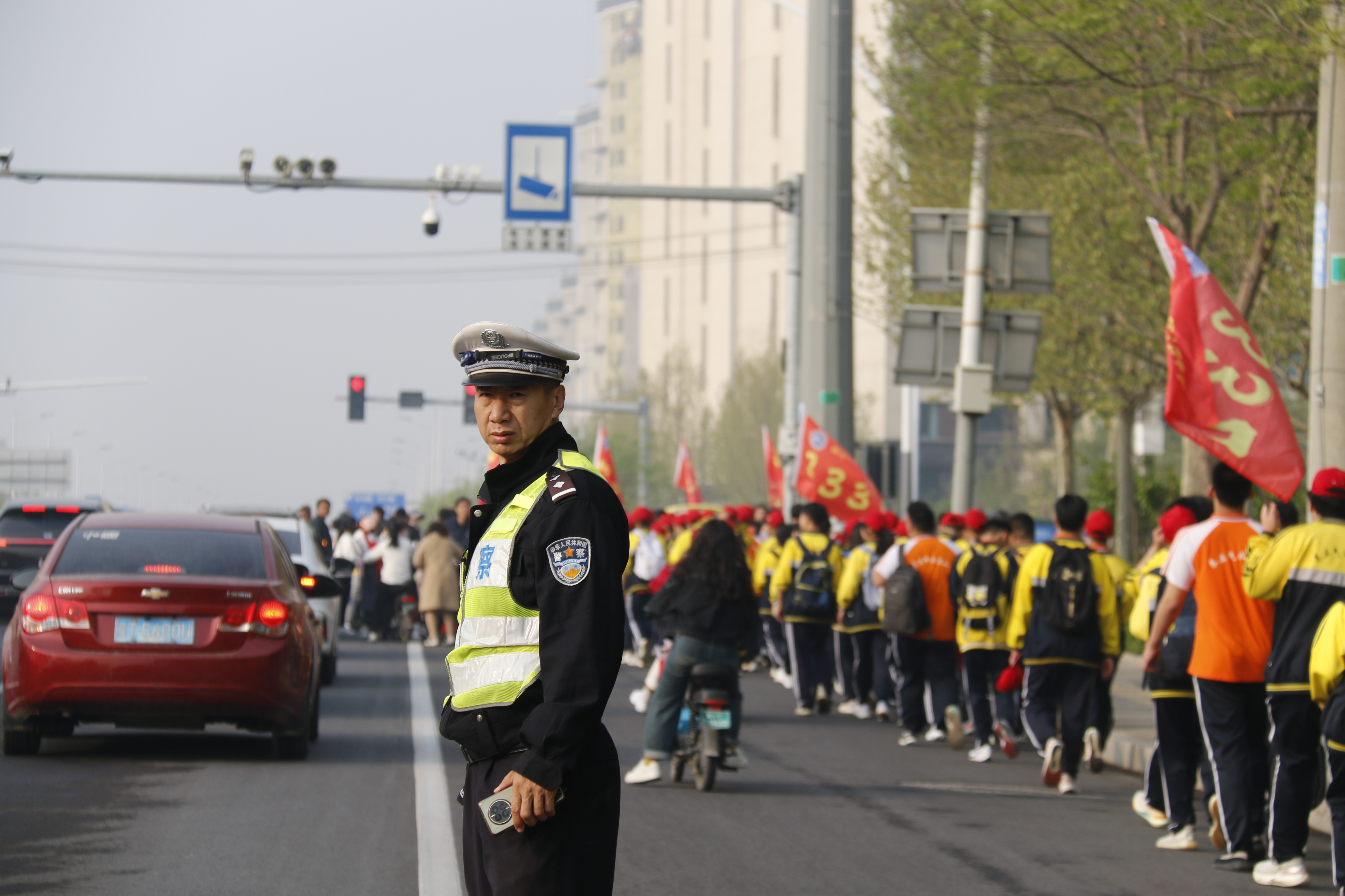 上午7点,全体师生排着整齐的队伍,迎着朝阳,踏着春光,沿着人民西路、前进大街、滏阳河,向着研学目的地--衡水保利大剧院进发。据悉,本次远足总行程约15公里,为确保活动顺利进行,学校制定了周密方案,提前对行进道路进行实地考察,规划了远足路线,制定了详实的安全预案,做好了一切后勤准备。