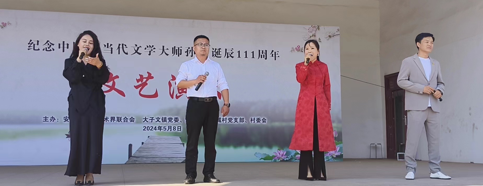 荷韵生五月,追思遗念长。2023年5月6日,纪念中国现当代文学大师孙犁诞辰110周年文艺演出,在“孙犁故里”——安平县孙遥城村孙犁文化广场隆重举行。安平县文联主席王彦博,大子文镇党委书记张旭 ,县朗诵艺术学会会长王冉,与百余名演艺人员参加活动。