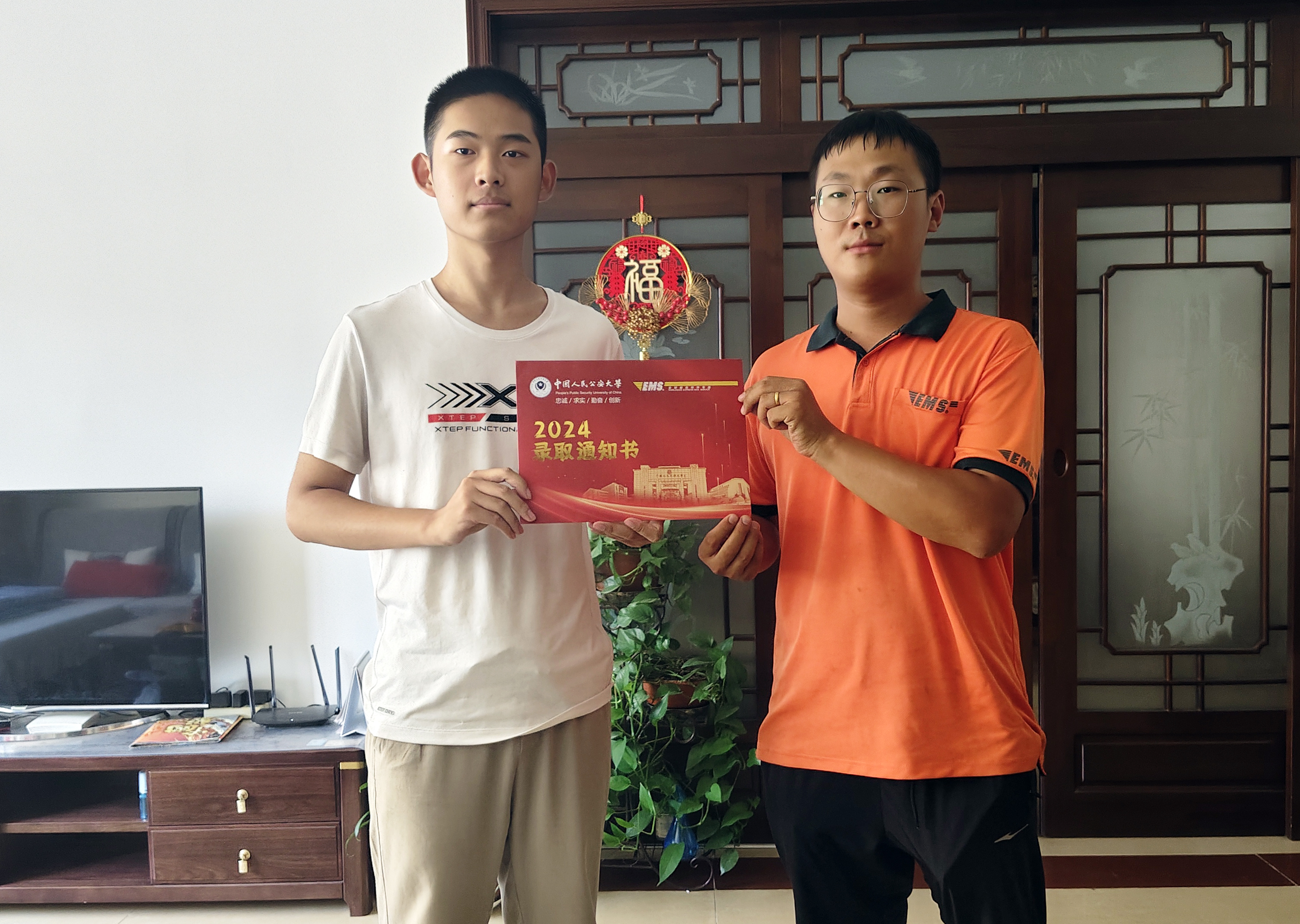 7月13日,温州市邮政分公司滨江揽投部EMS快递员来到温州市瓯海中学,将一封来自浙江大学的录取通知书郑重地交到喻瑞羲同学手中。 (全民拍拍客上传)