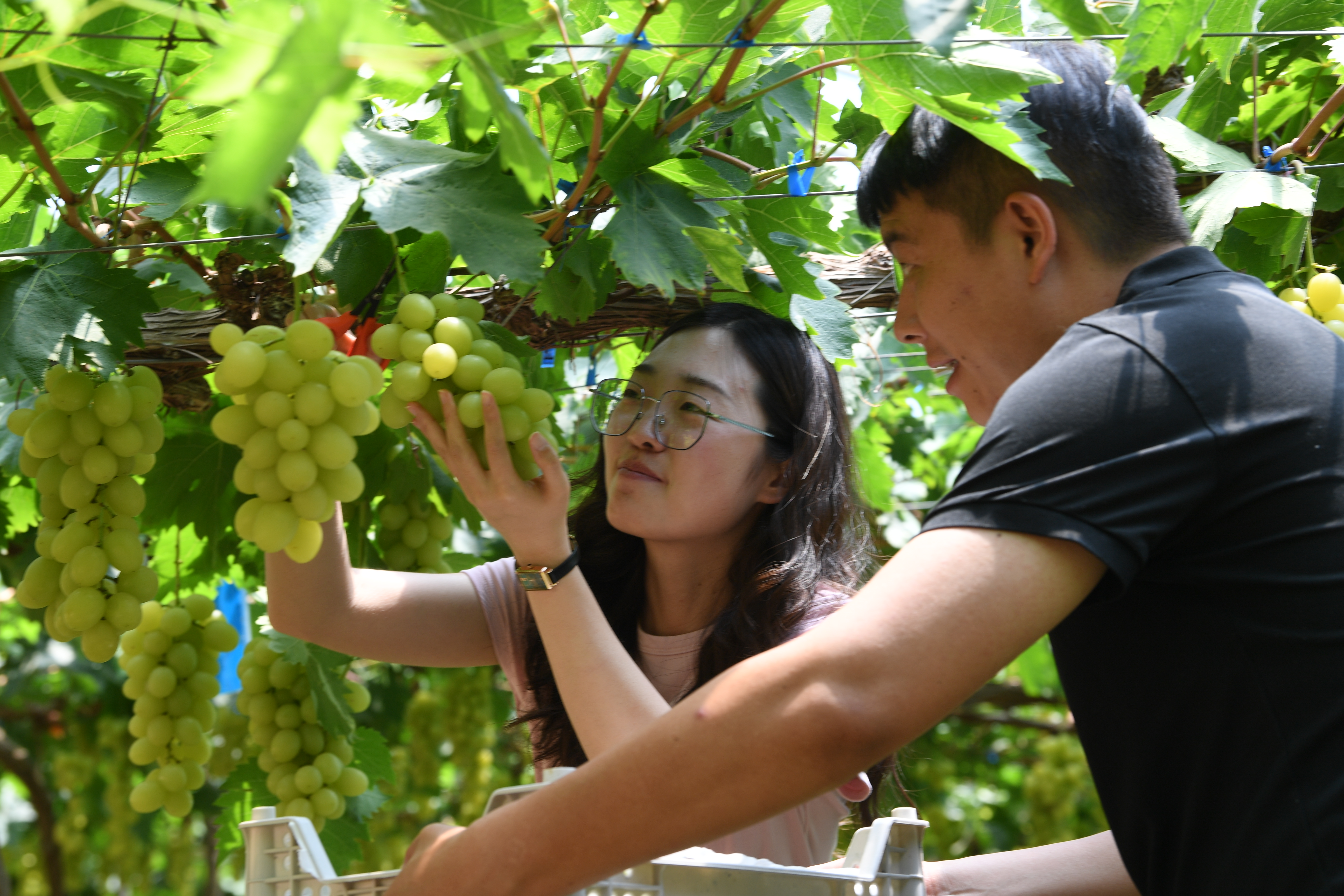 采摘鲜桃。崔佳栋 摄