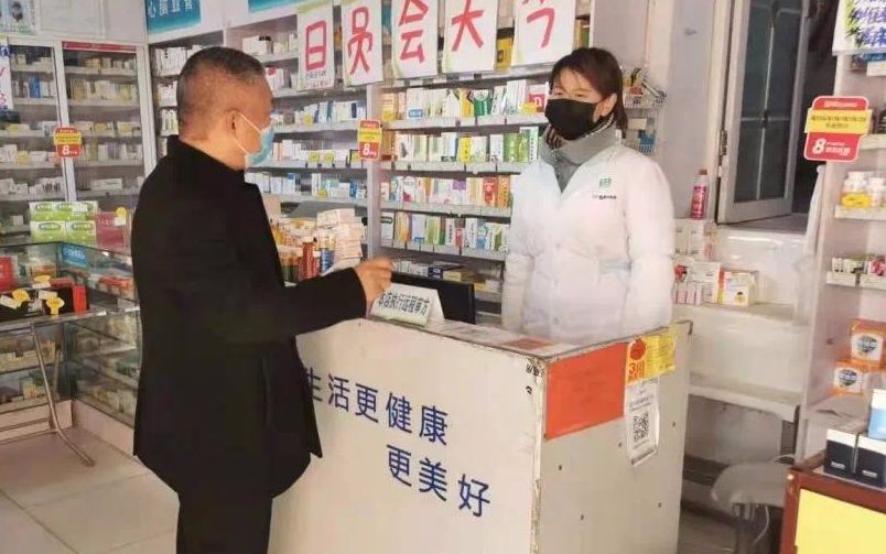 工作人员检查药店。王鼎 摄