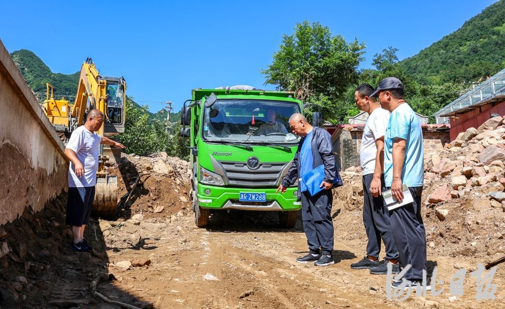 灾后生产自救,不等不靠。8月3日,雨停之后,代科显带着十多名党员干部和村民组成一支抢险队,对农田的积水进行强排。南头村农田地势低洼,道路比两侧的农田足足高出2米,为了把积水顺利排出,抢险队在通往村外的道路上挖了一条宽2米、长7米的沟渠,并找来两台抽水泵,积水顺着沟渠排到道路旁的空地上。
