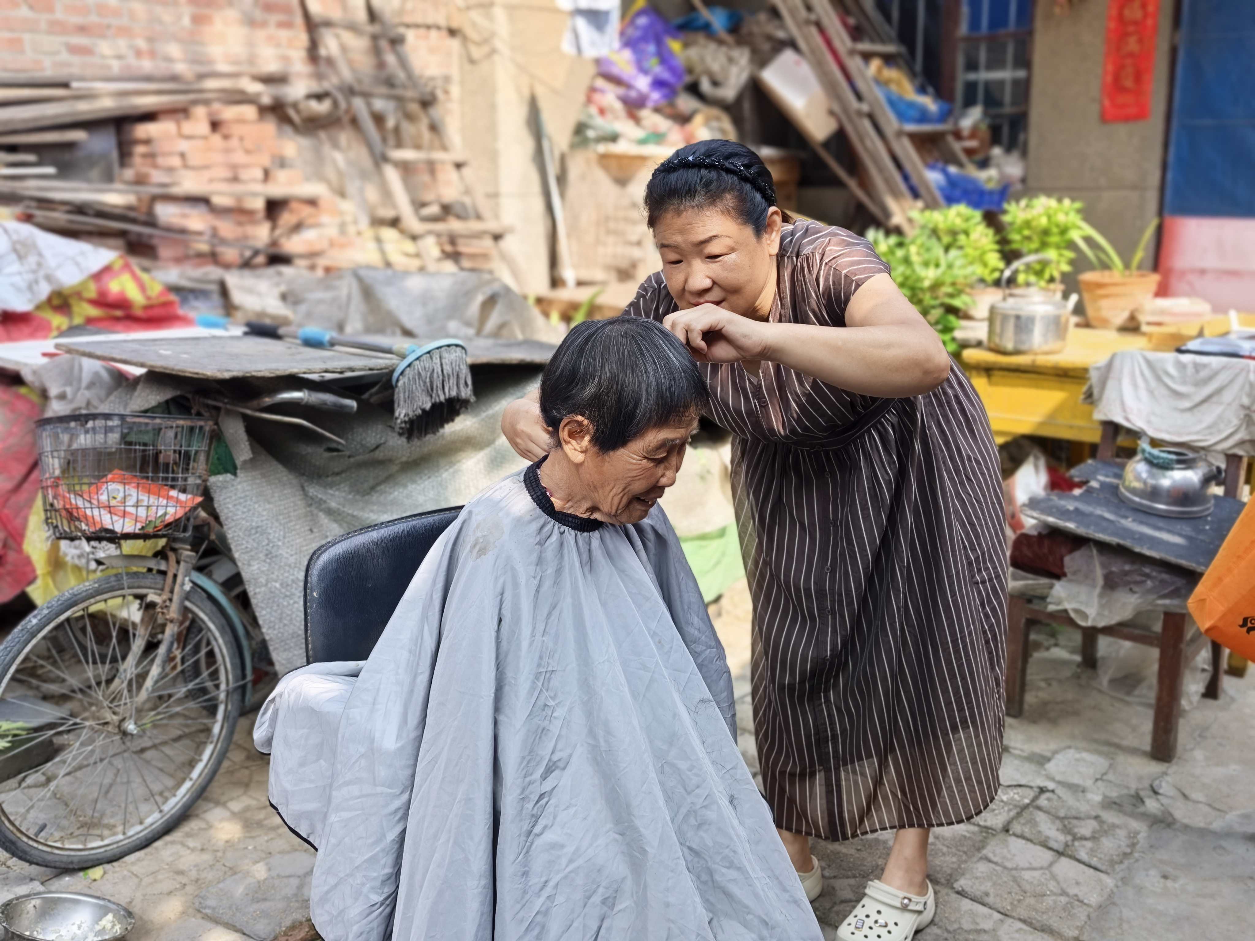 活动现场,村民们纷纷拿出菜刀和剪刀,志愿者技艺娴熟,将刀具打磨得锋利锃亮。那边,理发师熟练地操作着剪刀,给村民理着发,拥有一头利落精神的发型后,老人们笑逐颜开。闫金虎还走家串户,为村民更换纱窗。“家门口”的服务给村民们带来了实实在在的便利与温暖。