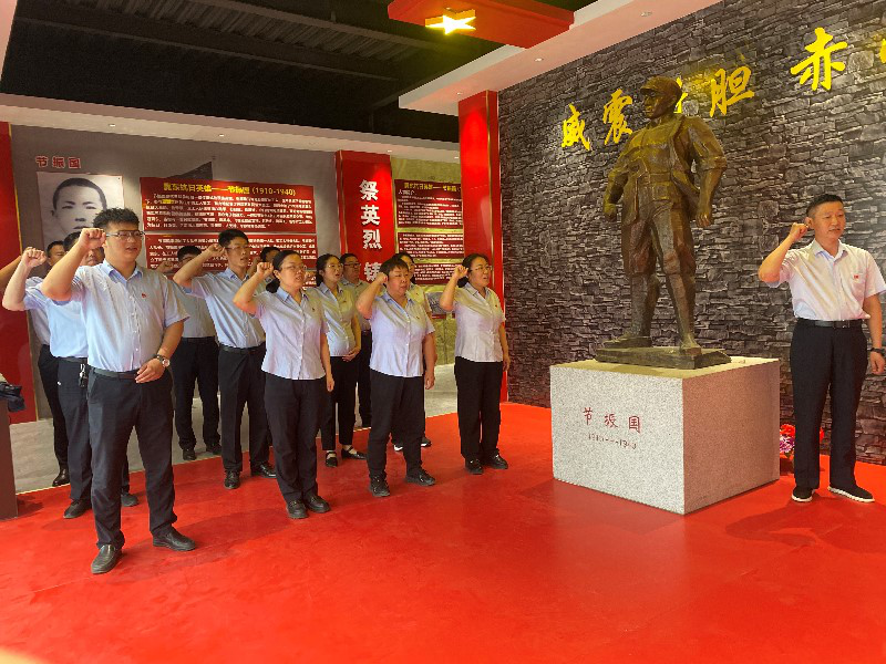 抗日英雄节振国纪念馆是故城县第一个乡村红色文化教育基地。大家认真参观了纪念馆,聆听了节振国英勇战斗、不惧牺牲的英雄事迹,认真观看历史文物和图片资料,全体党员深受震撼。随后,全体党员肃立在党旗下高举右拳,重温入党誓词。