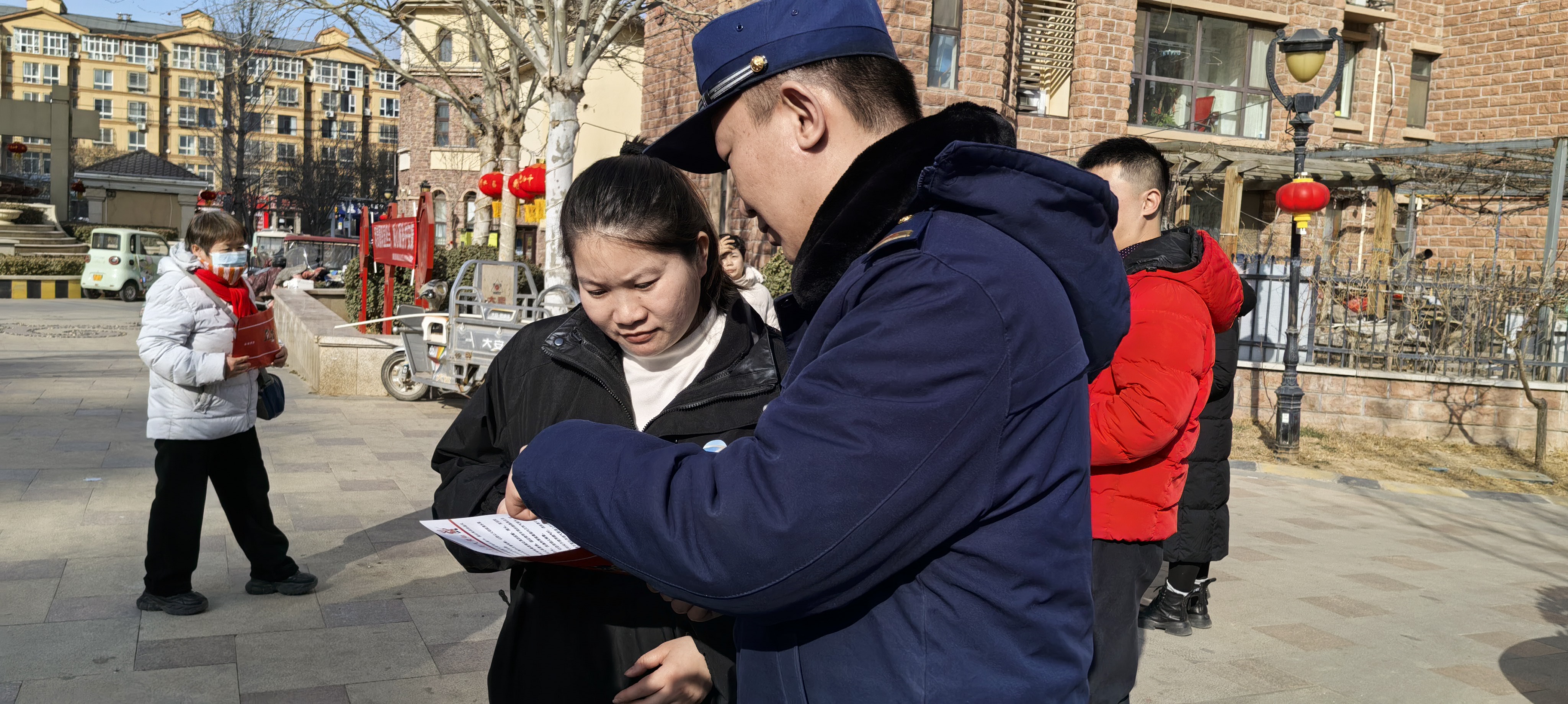 工作人员现场发放消防宣传彩页。刘祎程 摄