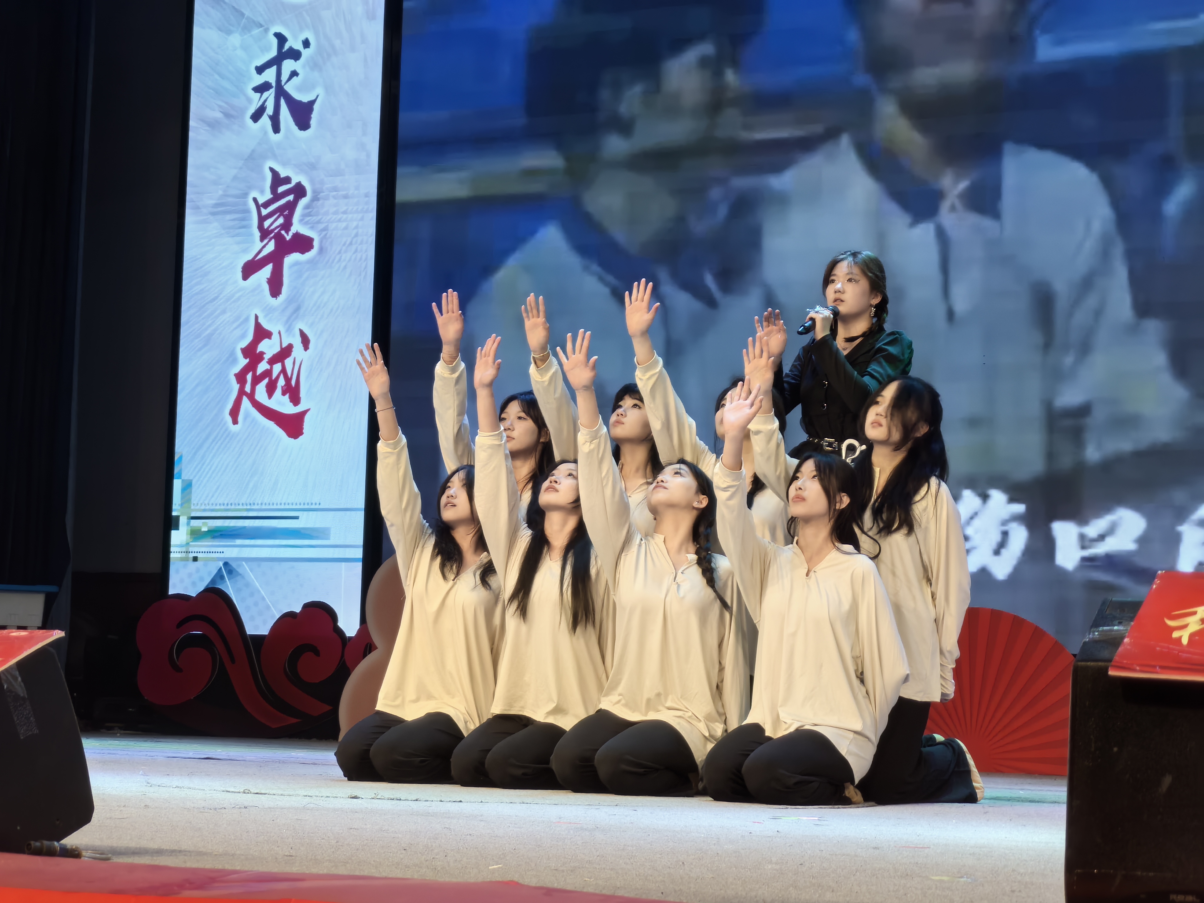 此次比赛,首次采用了学生主唱、老师助演的环节,由师生共同完成一首作品。首先出场的景楚越同学已经是第二次参加校园十佳歌手比赛,此次她和助演老师孙悦带来的唱跳歌曲《兰花草》,用动感的舞蹈和激情的旋律拉开决赛序幕;祁愉茜、樊华带来的《盛夏光年》,吹响了同学们不负盛夏光年,你我决战青春的号角;迟煦中、郭倧旭带来的原创歌曲《我的舞台》,说唱的组合唱出了他们的自豪与力量,展现了衡中学子独具一格的创作才能;李语粲、刘绍轩的《给所有知道我名字的人》,请出了神秘嘉宾——王建勇校长做助演,当王校长拿起话筒和同学们一起唱起这首歌时,全场的气氛达到了高潮,同学们挥舞着荧光棒,呐喊声此起彼伏,充满激情;厉凯文、张宇宸带来的《强军战歌》,展现了海航班学员台下不懈每一天,台上出彩一整场,不争第二、只取第一的决心;来自衡中西藏班的嘎玛桑珠、达瓦、桑杰加措三位选手带来的一曲《珠峰天使》,将藏族舞蹈、街舞、说唱融合,体现了藏族学生的多才多艺,让现场观众一起感受珠峰独特的美丽和神秘;“如果能重来,我想选李白”,刘邢宇一首《李白》引起了全场大合唱,加上街舞男孩们的助阵,将比赛再一次推向高潮。