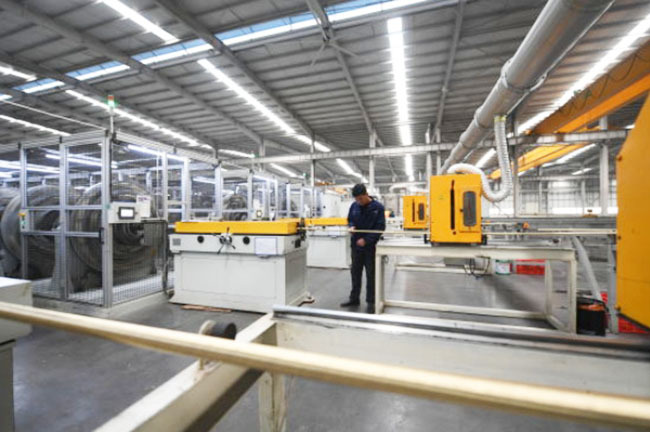 景县一橡塑企业研发的120米超长高压胶管生产线。高雷 摄