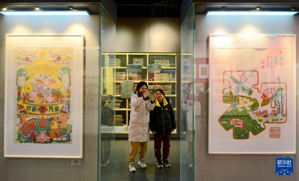 12月27日,武强县职教中心的学生在武强年画博物馆内参观。