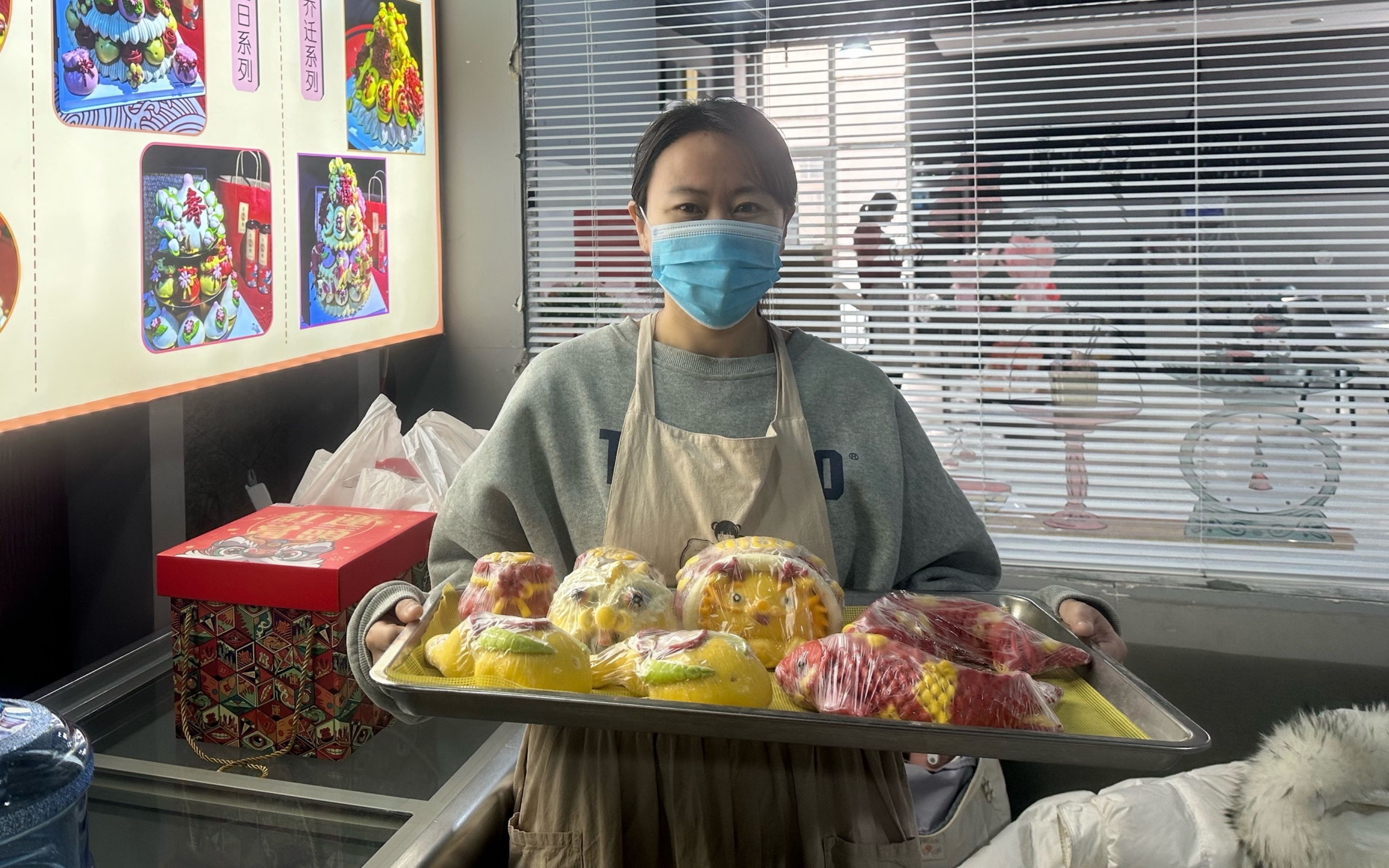 营业初期,知道店铺的人不多,张小婷就想着把成品发到朋友圈,没想到得到了很多人的喜欢,生意慢慢好起来,回头客也越来越多。开业一年多,张小婷已经能制作出各种各样的花馍,还将面塑、雕刻、泥塑等手法融入中式面点制作中。