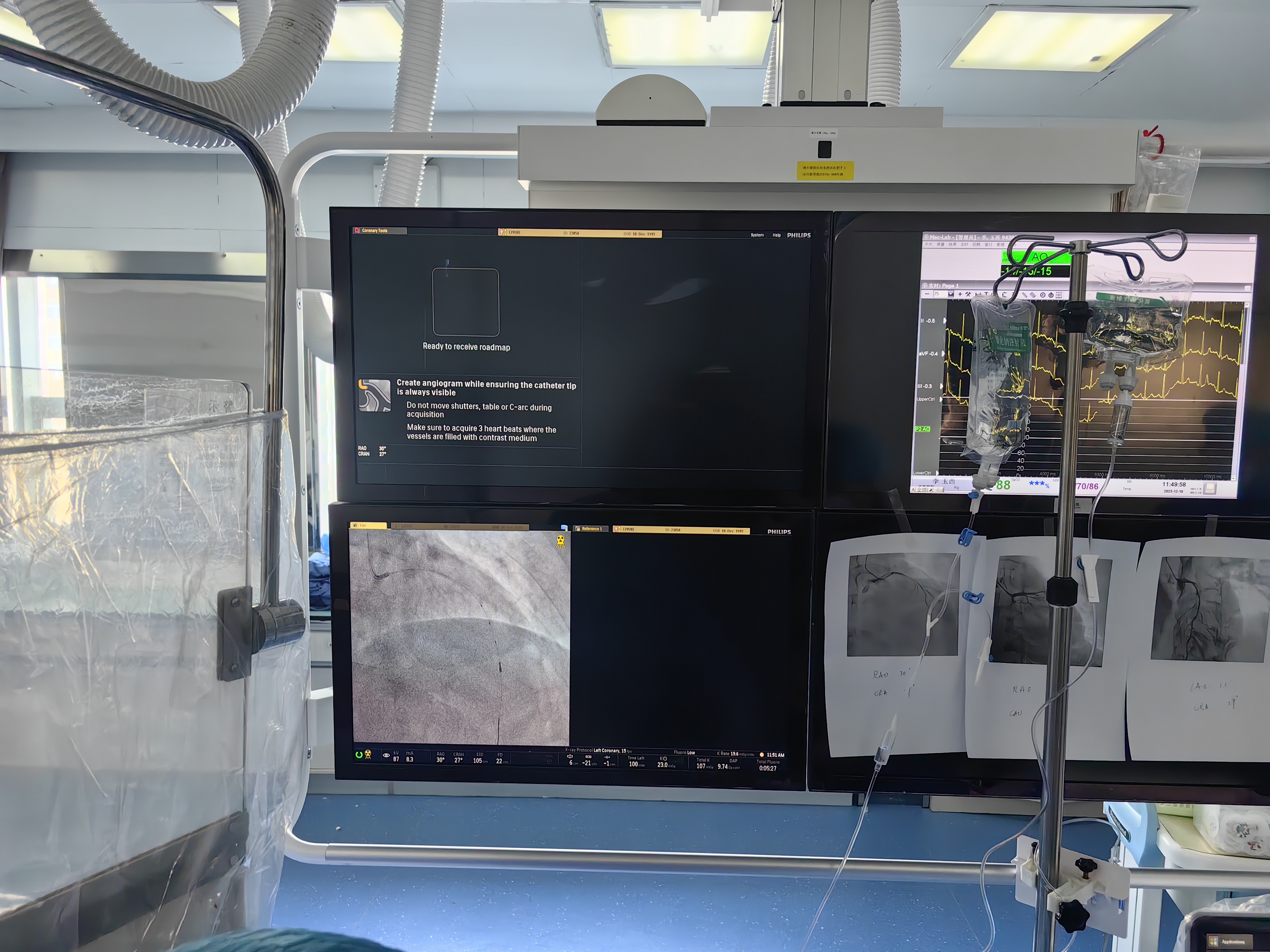 患者的需求,就是医者的使命。针对这例患者,张慧晶在向患者详细交代情况,征得家属同意后,迅速组建了手术攻关小组,带领核心成员韩世飞、张宏博、李占虎等反复认真查阅上次手术全过程,熟练掌握了每根血管的走行、粗细、病变位置和长度。韩世飞认真查阅了国内报道的几例患者资料,张宏博细心地把患者上次手术几个关键体位的造影图像打印出来,手术时挂在了辅助屏幕上。心内科导管室马芳芳护士长则带着她的护理小伙伴们,把手术相关各种器械设备准备到位,对手术中的各项护理工作精心拿出预案。
