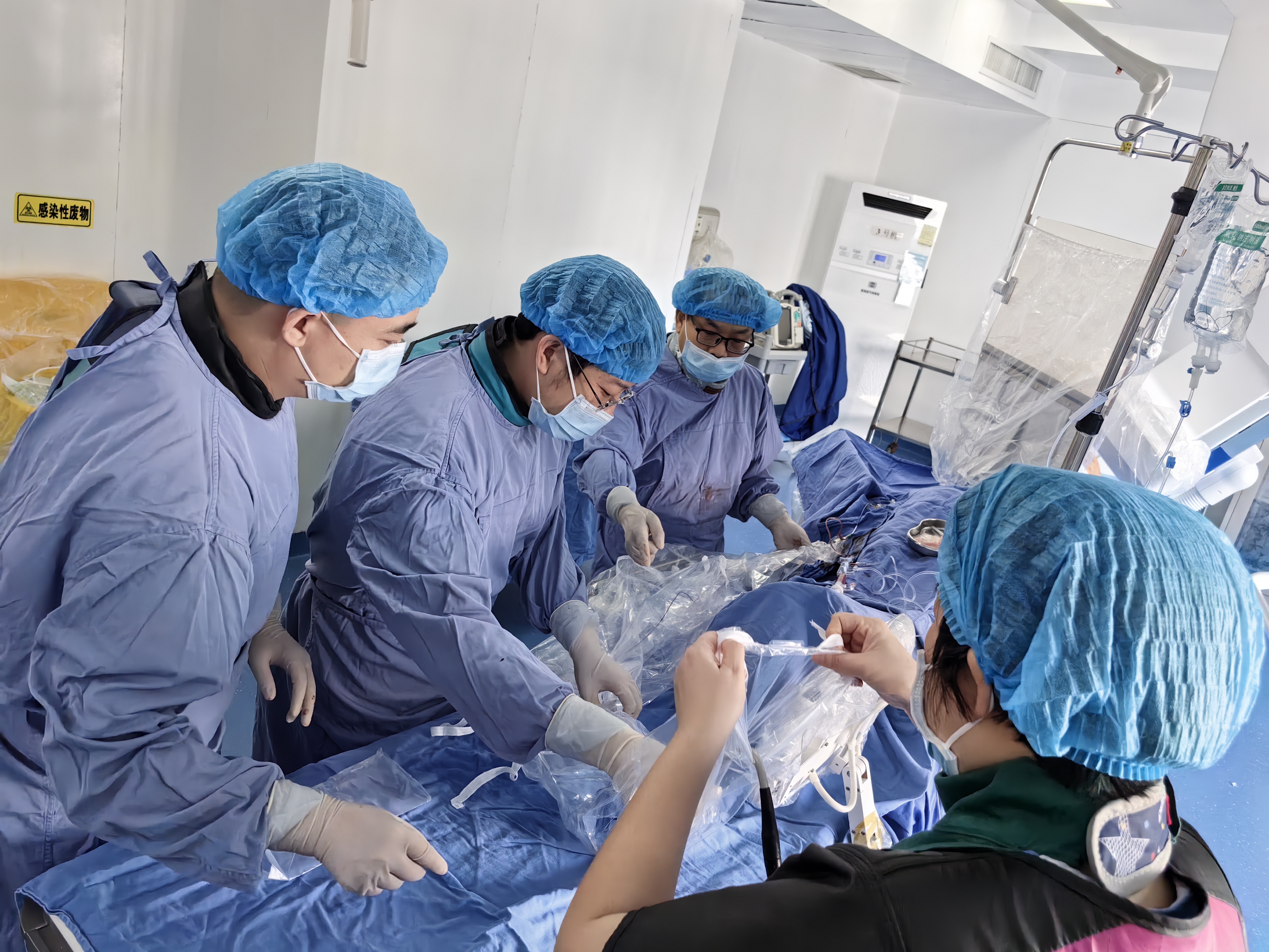 衡水市人民医院(哈励逊国际和平医院)心血管内科学科带头人张慧晶教授(左一)带领团队现场开展科技攻关。