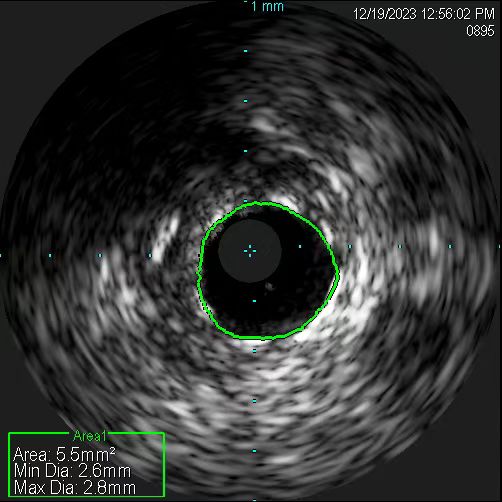 应用血管内超声精准测量。