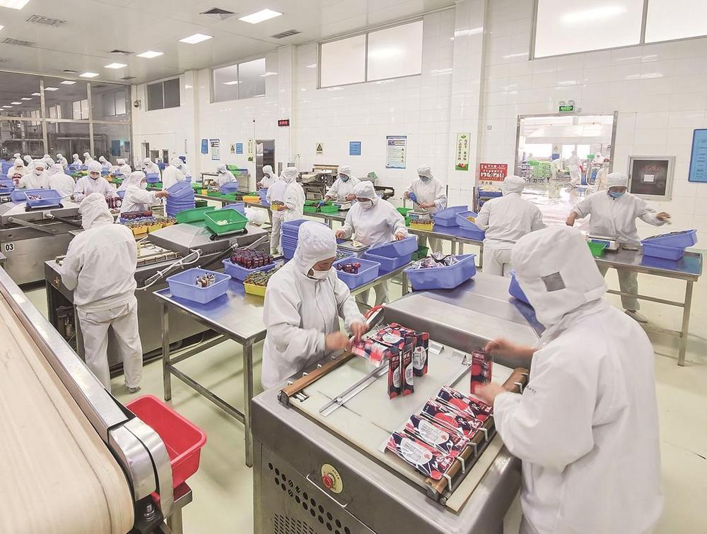 在河北栗源食品有限公司生产加工车间,工人在板栗仁加工生产线上忙碌。 本报记者 张北男 摄