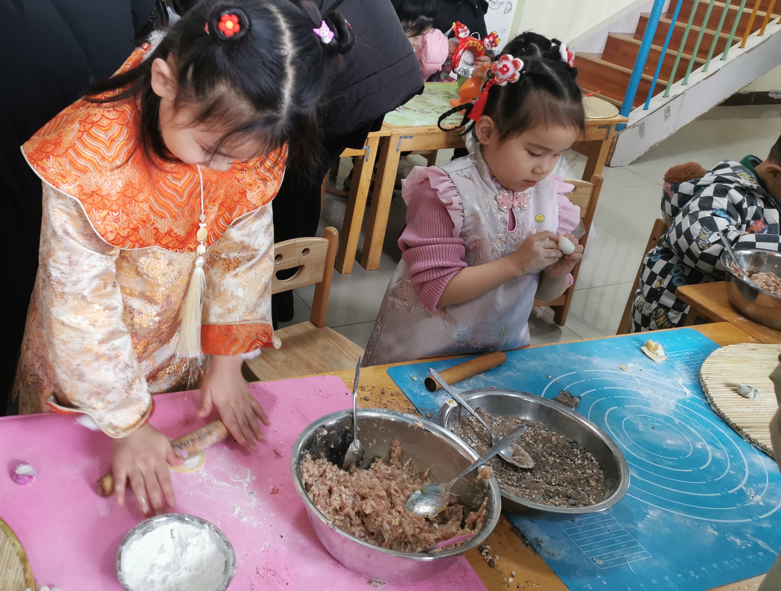 包饺子,吃饺子是我们的传统习俗。为培养动手能力,孩子们信心满满的“上阵”了,“八仙过海,各显神通”,一个个富有“童真童趣”的饺子在孩子们的小手中“变”出来了,一盘盘独具特色的水饺分外香甜。