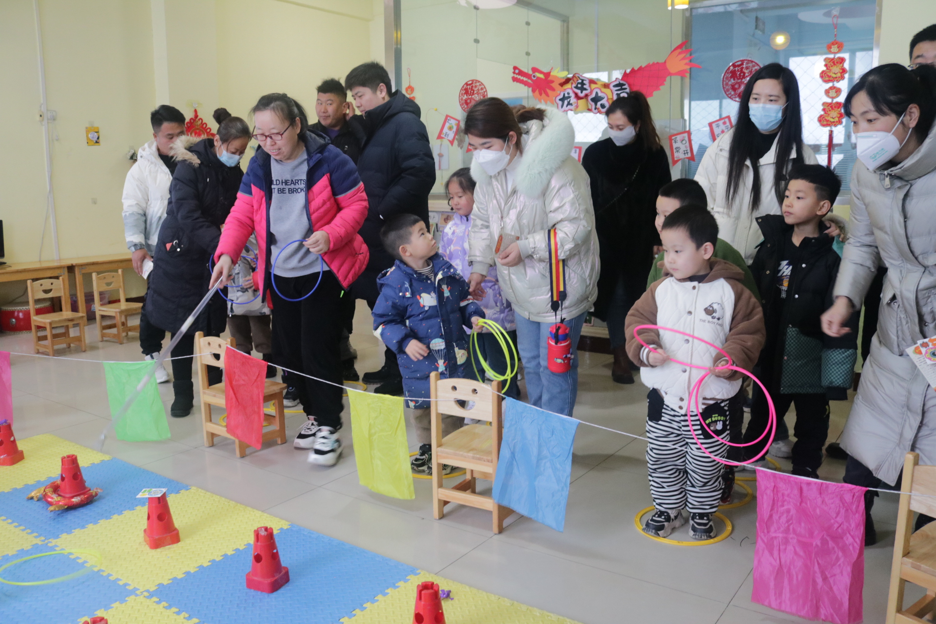伴随着孩子们阵阵欢呼声,富有传统文化特色的划旱船、写福字、剪窗花、投壶,别出心裁的走迷宫、套圈、揪尾巴等丰富多彩的趣味游戏,展现出亲子间蓬勃的朝气和满满的爱意。