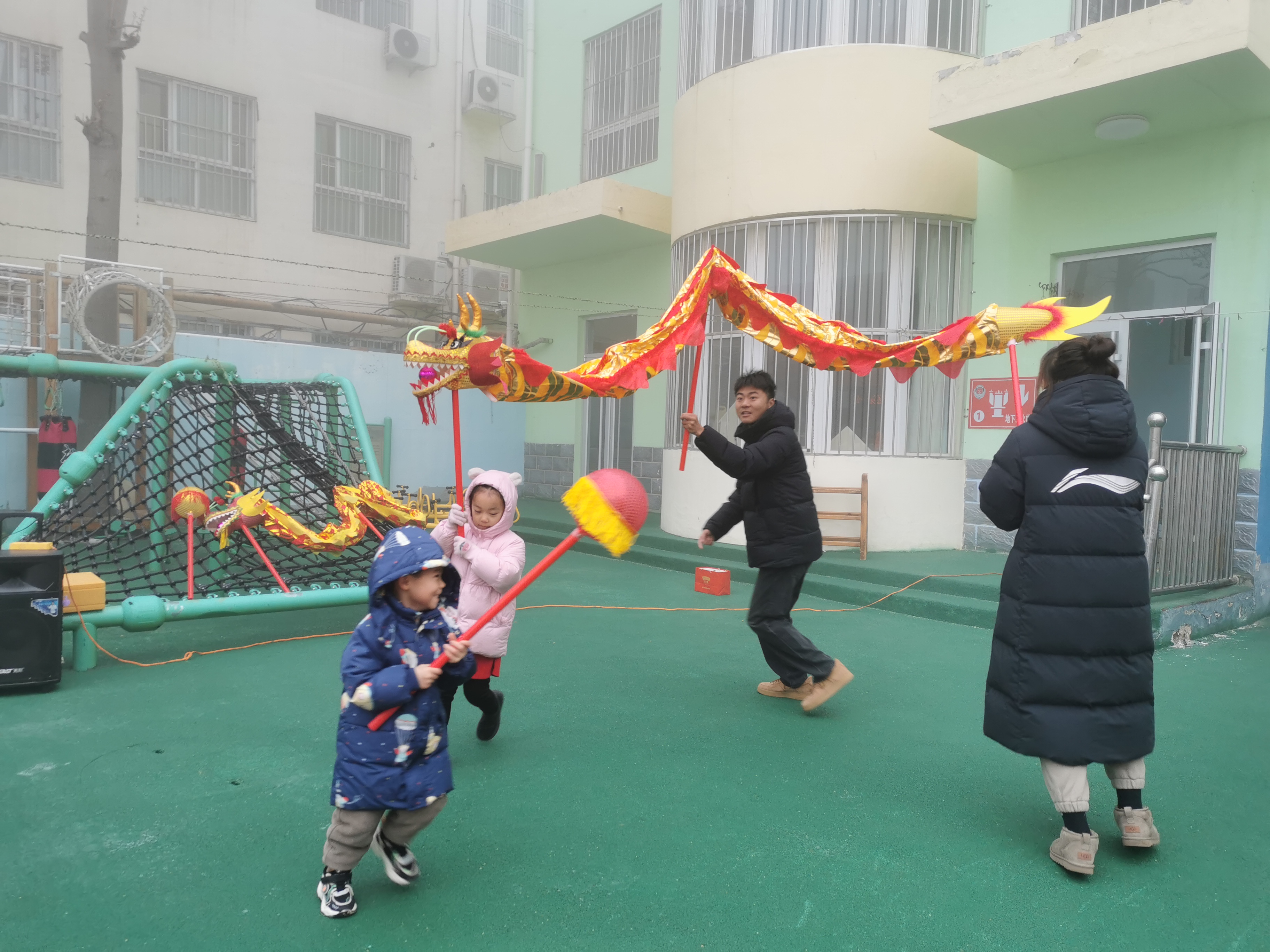 巨龙腾飞,舞出风采。孩子和家长们同心协力,挥舞龙头甩起龙尾,一条条巨龙活灵活现。孩子们笑着说:“舞龙真神气!”