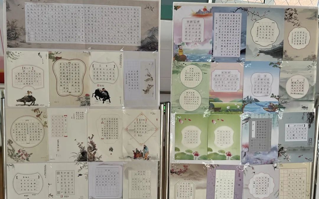 展板前,围观的同学无不啧啧称赞,既为小作者们精湛的书画技艺点赞,也为他们创作出的精美作品喝彩。