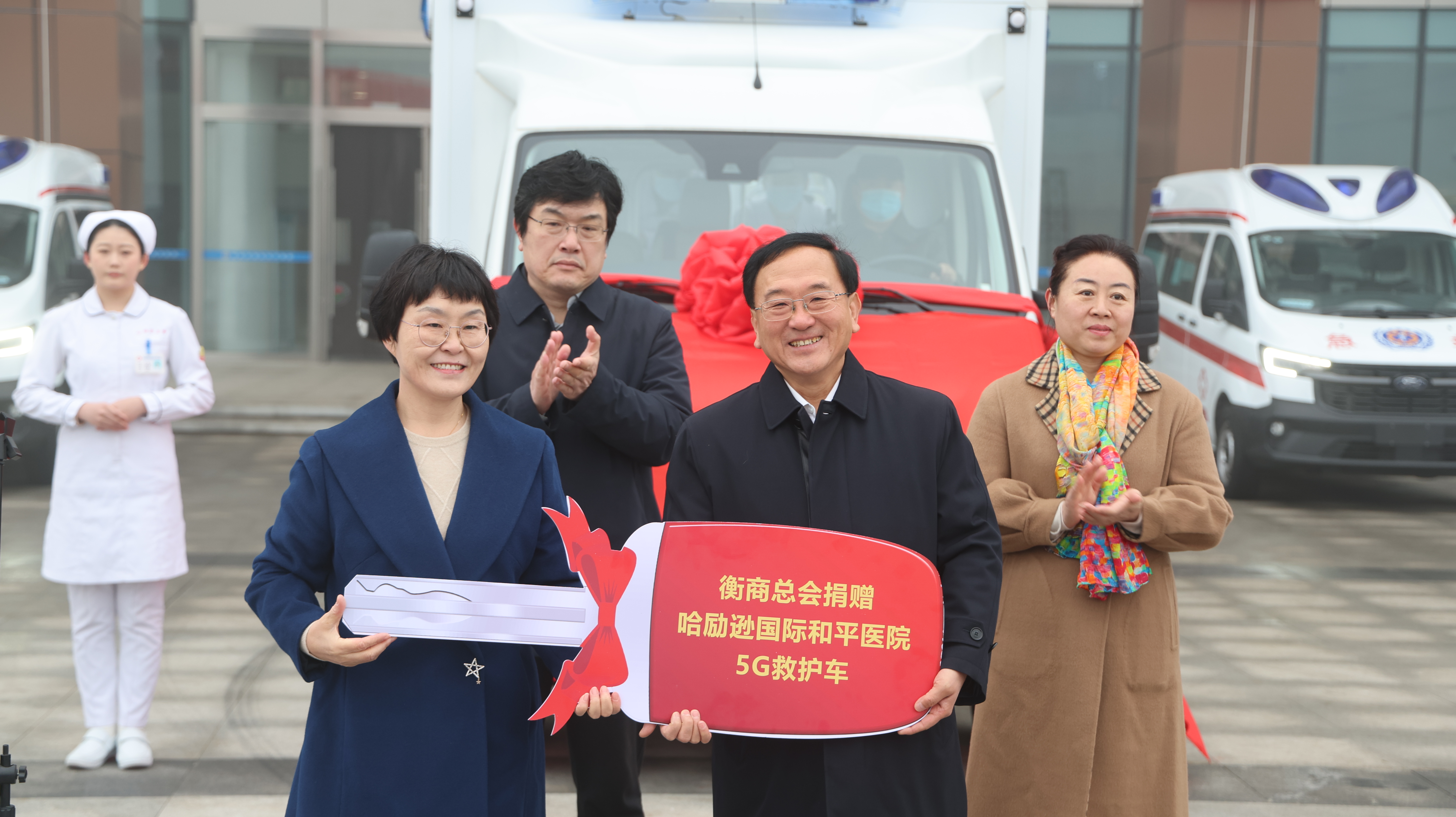 欢天喜地添利器,悬壶济世谱新篇。郑辉在致辞中说,哈院党委举全力来办好党委政府认可、群众满意的区域医疗中心,促进优质医疗资源扩容下沉,更好惠及衡水幸福民生;始终将提升急危重症和疑难病症的诊疗能力作为努力的方向,全院医务人员冲锋在前,始终彰显着哈院担当、哈院速度、哈院温度,赢得了社会各界广泛认可和支持。郑辉表示,衡水衡商总会捐赠的“5G重症监护救护车”,是急诊、重症医学工作者的“神兵利器”,是急危重症患者的“生命之舟”。5G重症监护救护车在哈院的成功启用,既是衡水急危重症救治能力提升的标志性举措,也是全市医疗卫生系统巩固拓展主题教育成果的一次生动实践。全院上下将以此为契机,进一步聚焦群众健康需求,推动主题教育走深走实,不断提升医疗服务能力,积极为人民群众提供安全、满意的医疗服务,为持续推动中国式现代化卫生健康事业在衡水大地更加可视可感可行再立新功。