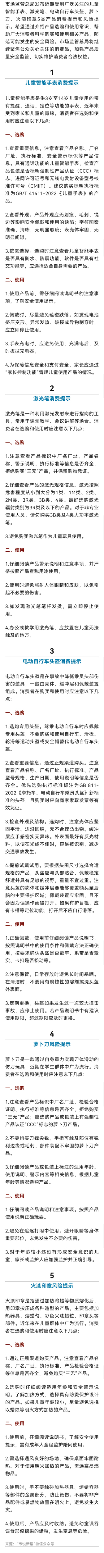 提示:市场监管总局发布儿童智能手表、萝卜刀等五类热门产品消费提示