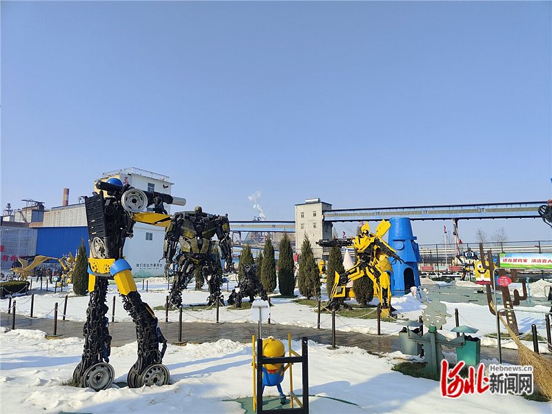 2023年12月31日拍摄的德龙钢铁厂区内的钢铁雕塑。河北日报记者 贾 楠摄