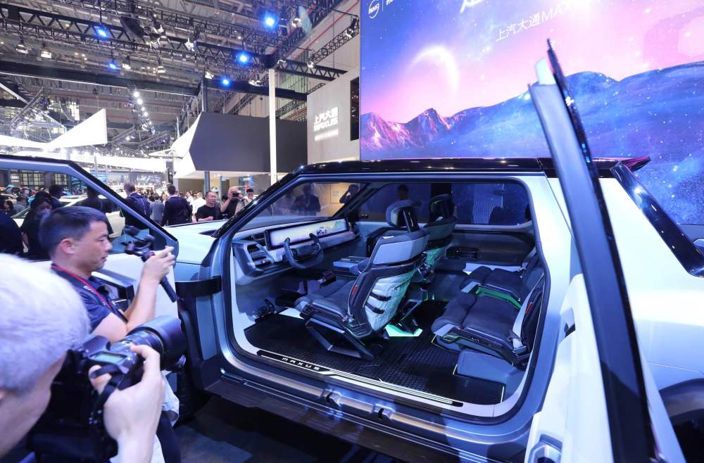 2023年4月18日,参观者在第二十届上海车展上拍摄一款纯电皮卡概念车。新华社记者方喆摄