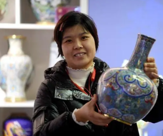 景泰蓝展品日常保养。崔佳栋 摄