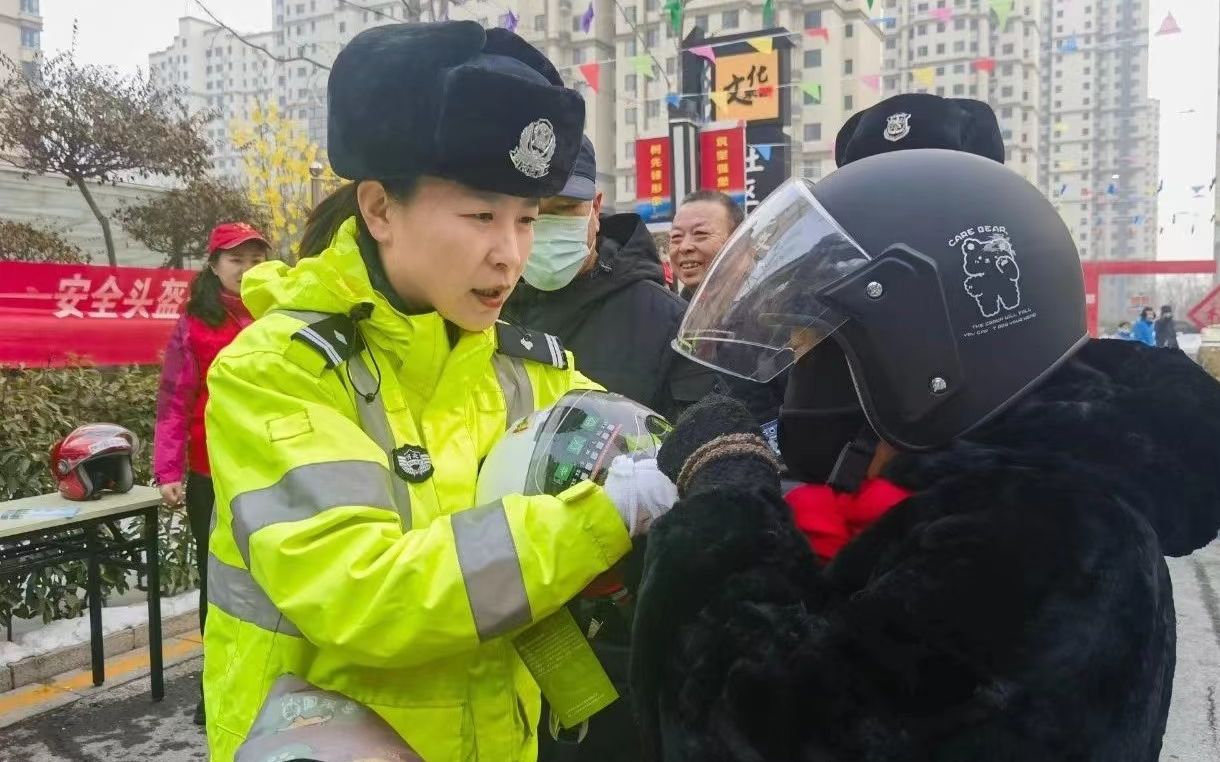 随后,交警结合“一盔一带”“零酒驾”等宣传内容,用通俗易懂的语言向居民们讲解骑行电动车时如何选择和佩戴安全头盔,通过“一对一”交通安全知识宣讲为居民讲解佩戴头盔的重要性,提醒居民要遵守交通法律法规,引导居民提高交通安全意识和自我防范意识,提示大家要摒弃交通陋习,自觉抵制交通违法行为。
