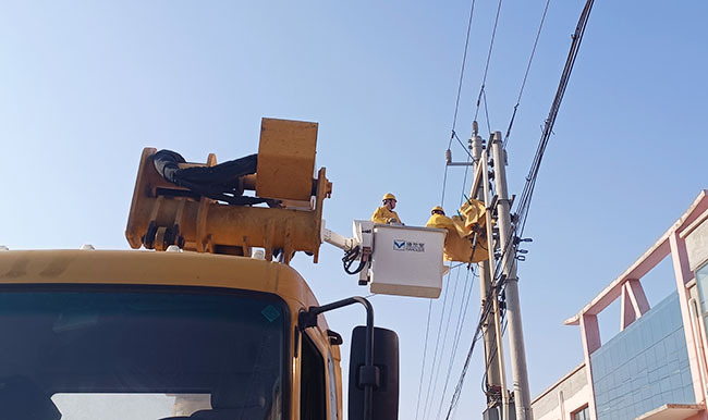 工作人员开展带电作业,消除安全隐患。冯钊 摄