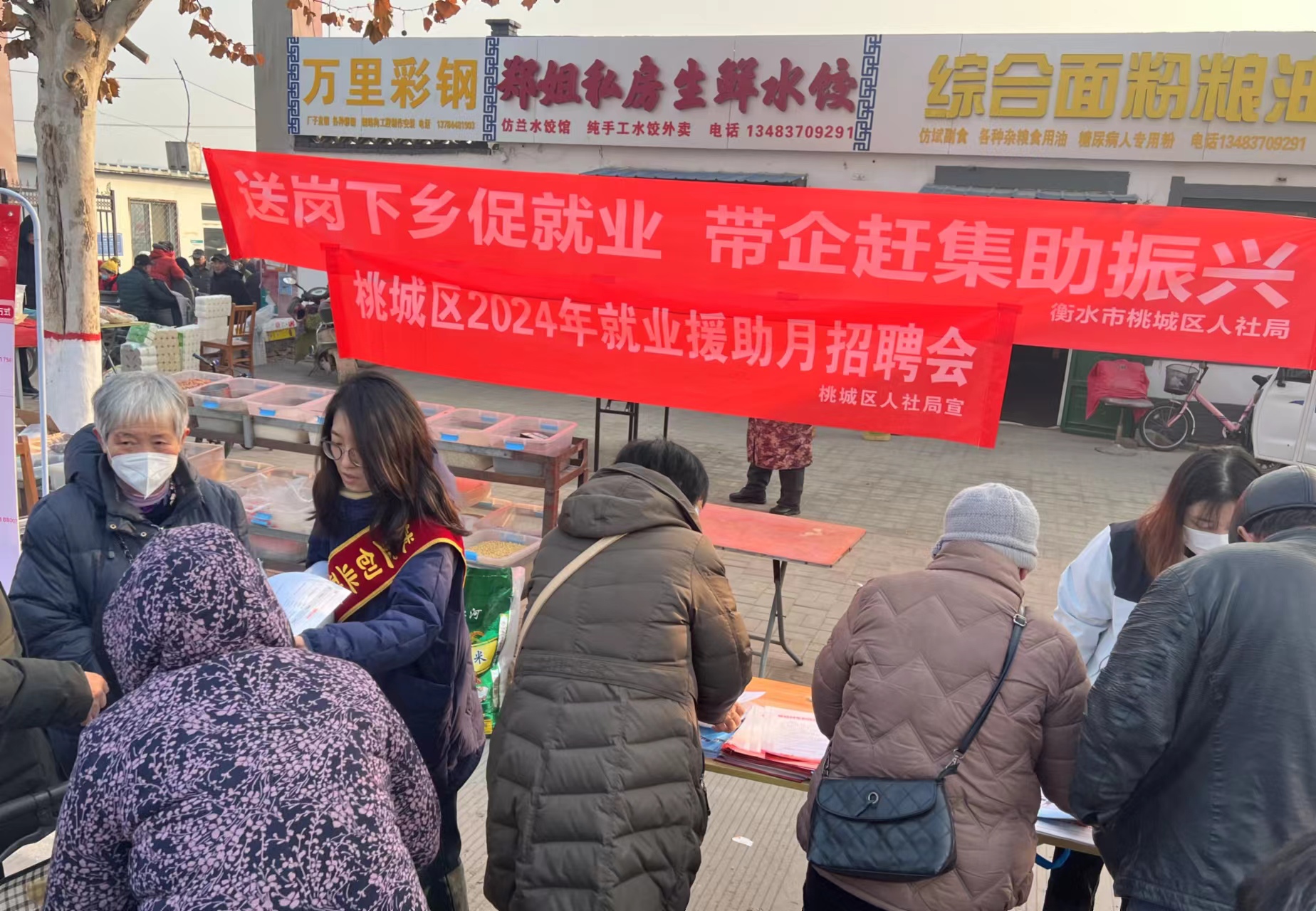 1月12日上午,衡水市桃城区人社局在郑家河沿镇集市举办“2024年就业援助月”招聘会,为企业和求职者搭建交流平台,吸引了众多群众驻足咨询。