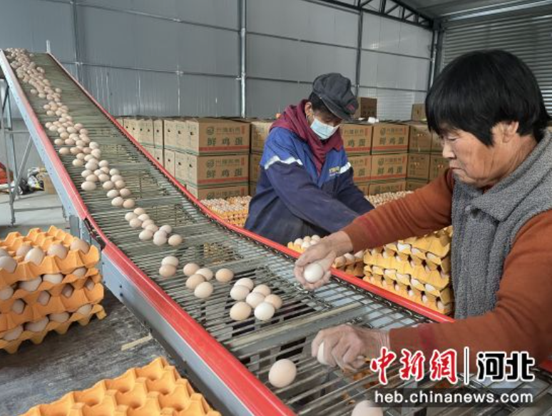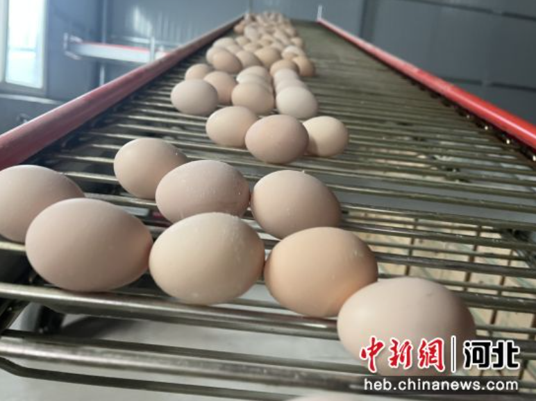 近日,走进河北省深州市辰时镇一蛋鸡养殖基地,一枚枚新鲜的鸡蛋随着传输带缓缓移动,从鸡舍输出,送至包装车间进行装盘、打包。