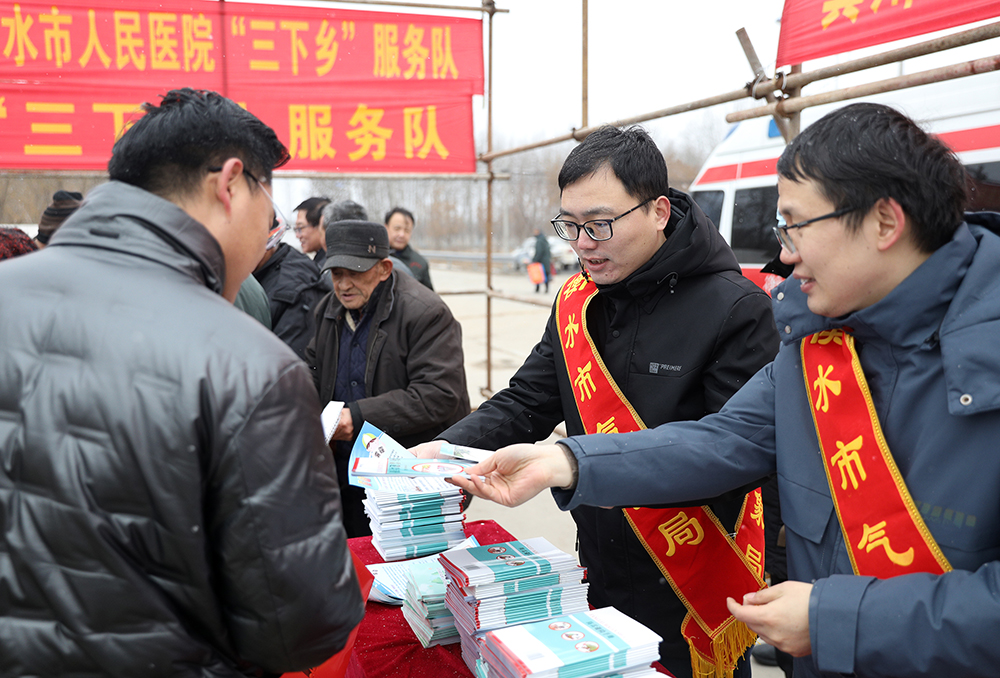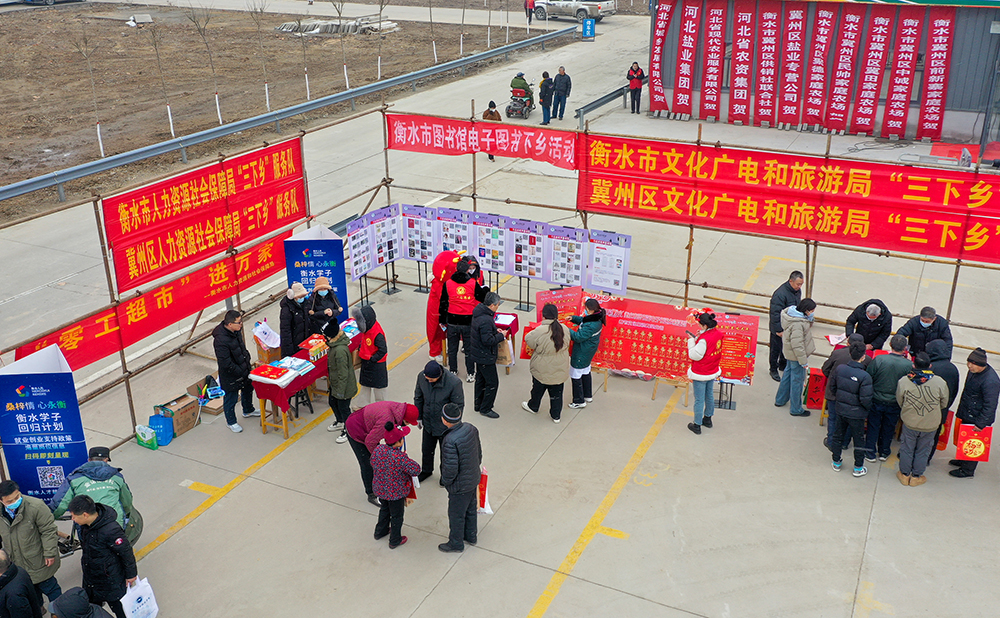 活动现场,来自五院、中医院等医院的医务工作者、市文联的文艺工作者、市气象局、民政局科学技术局的专业技术人员、衡水市图书馆志愿者……为大家带来义诊服务、文艺表演、农业科学技术讲解、书写春联等服务,满足村民对健康和文化生活的需求。