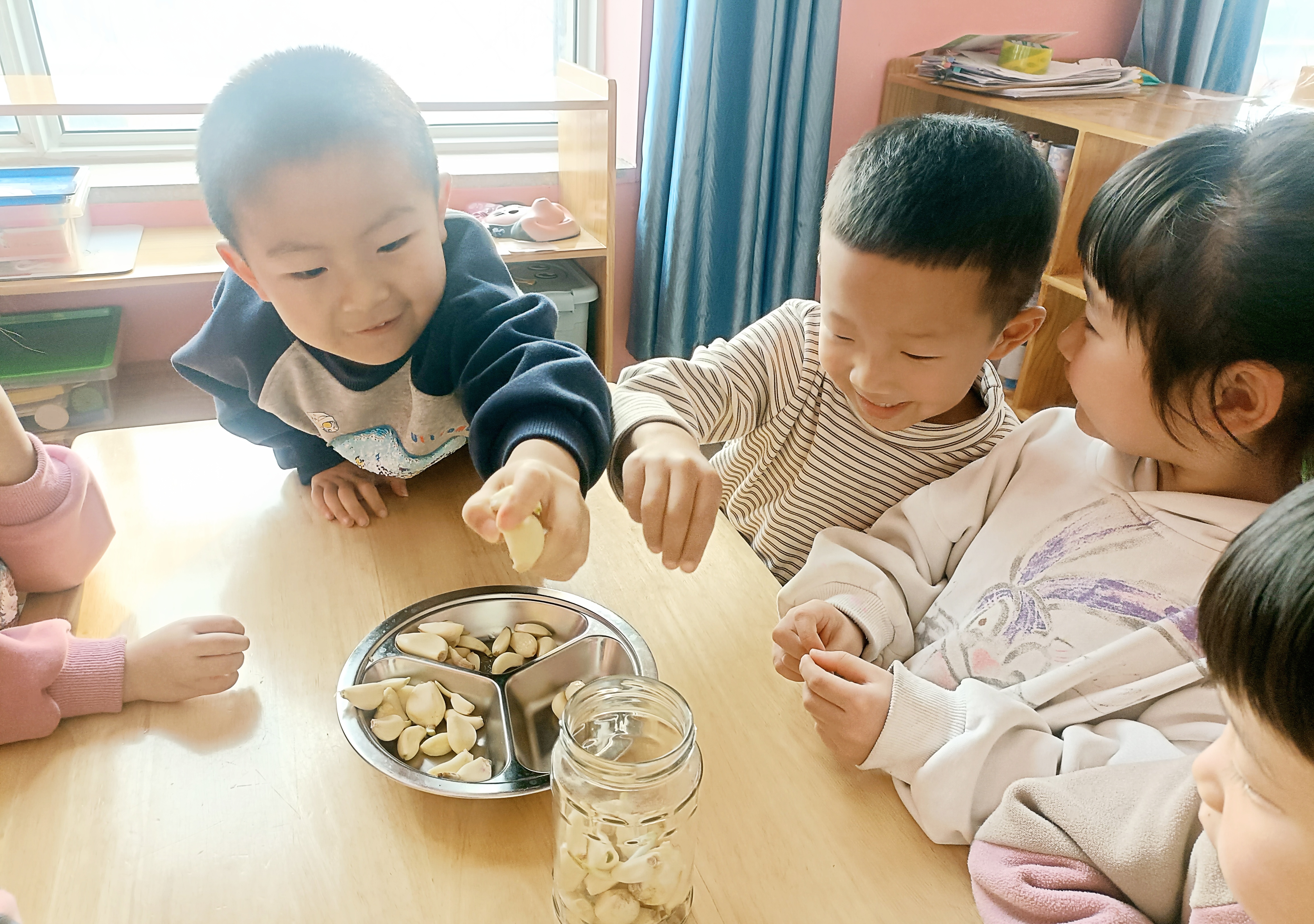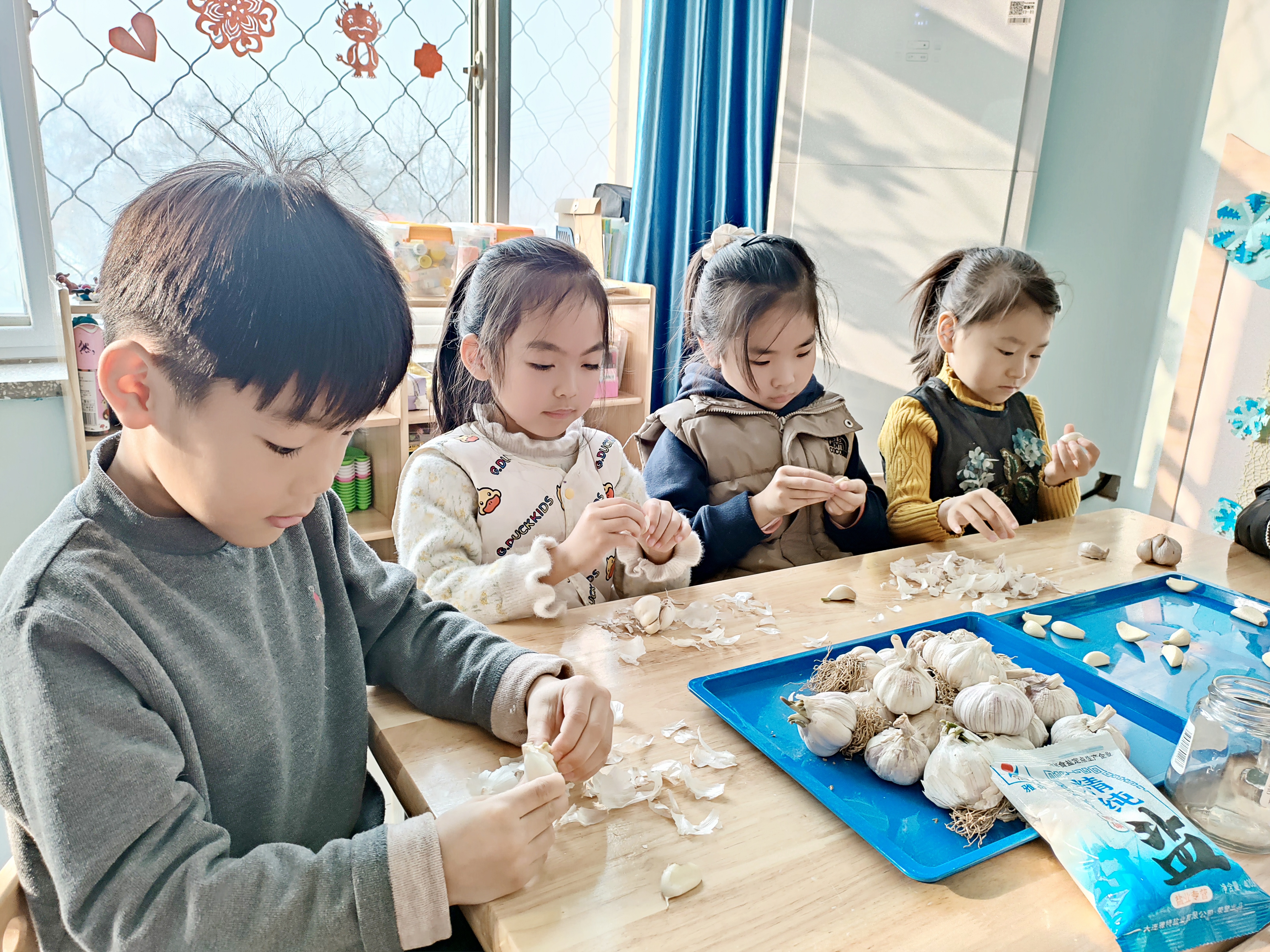 活动中,有的孩子将蒜瓣剥好放入密封的玻璃罐中,加入适量的醋和糖,密封好后放到阴凉处,期待着蒜瓣在几天后变成宝石一样的翠绿色。为了传递幸福,孩子们还把亲手制作的腊八蒜,送到正在辛勤工作的环卫工人手中。有的孩子将黑米、红枣、桂圆等食材一一放入锅中,熬制出一锅香甜可口的腊八粥,孩子们品尝着自己亲手做出的美食,脸上洋溢着幸福的笑容。