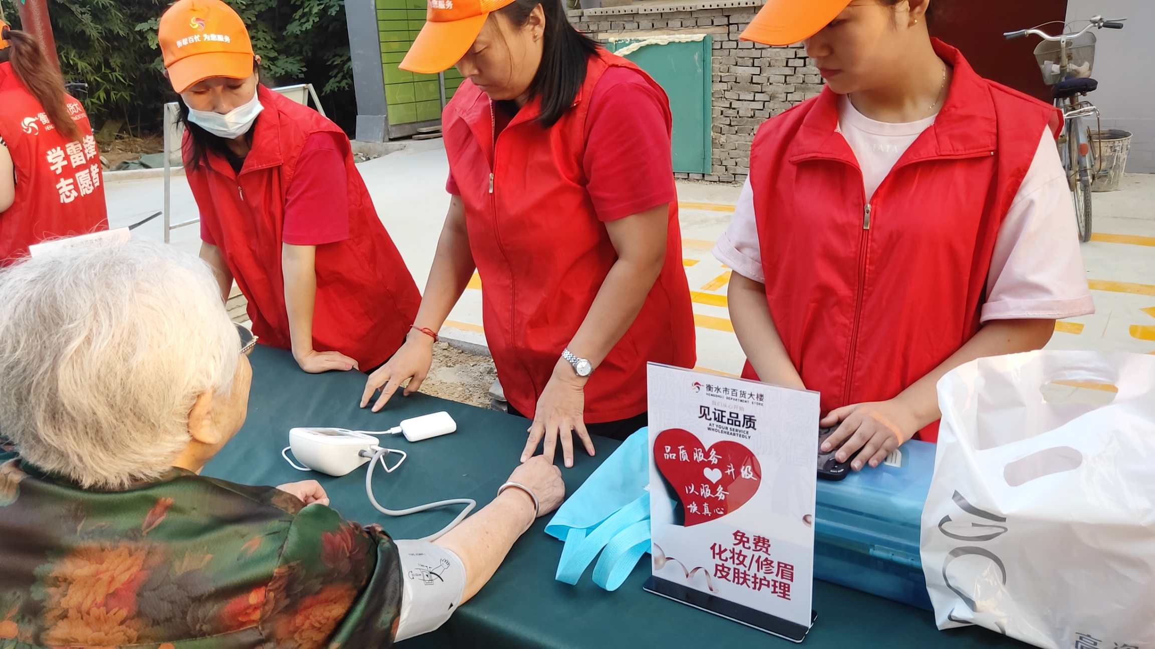 “衡帮百忙”——衡水市百货大楼党支部志愿服务队参与无偿献血活动。