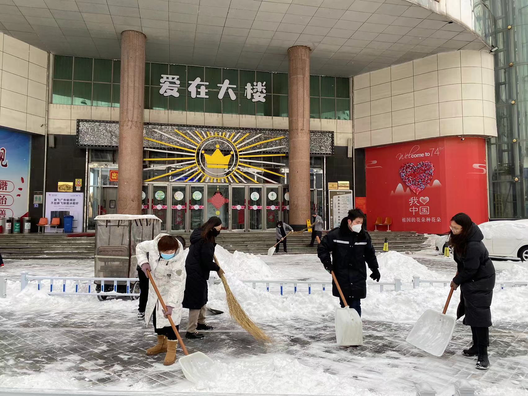 衡水市百货大楼党员、入党积极分子带头清扫积雪,方便顾客出行。