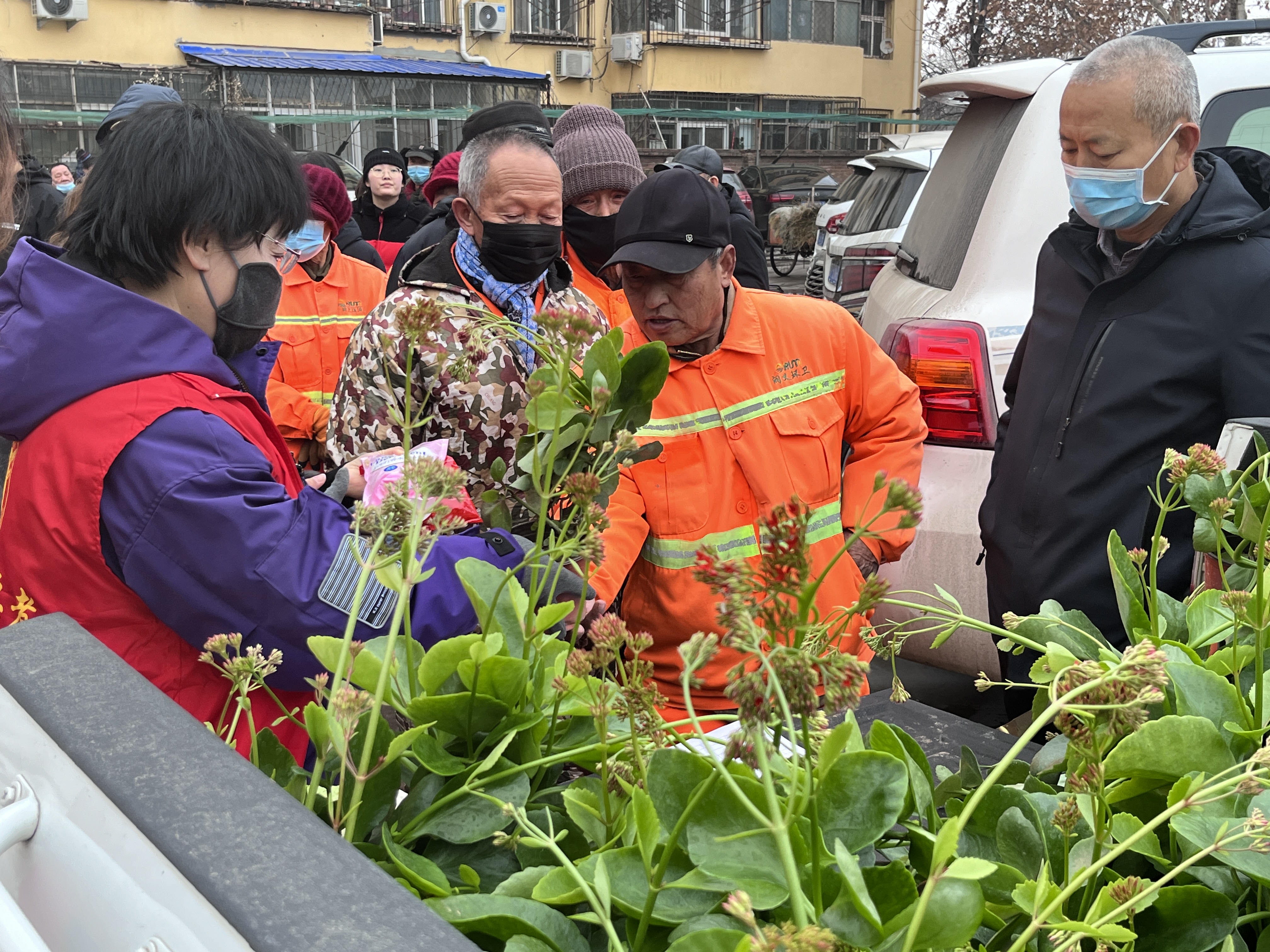 当日下午2点40分,活动现场热闹非凡,工作人员紧锣密鼓地筹备,居民有序排起了长队。河西街社区党支部书记张冬为居民送去祝福:“过了腊八就是年!今天在咱们小区举办活动,祝大家腊八节快乐!也提前给大家拜个早年!”衡水市园林中心志愿者为环卫工人和居民送上长寿花盆栽和腊八粥米;社区工作者协助居民们登记领取大白菜;佰康牙总管工作人员为小区老人免费检查了口腔问题。“社区领导关心挂念我们,非常高兴能参加这次活动。”76岁的小区居民曹桂芬满脸笑容。