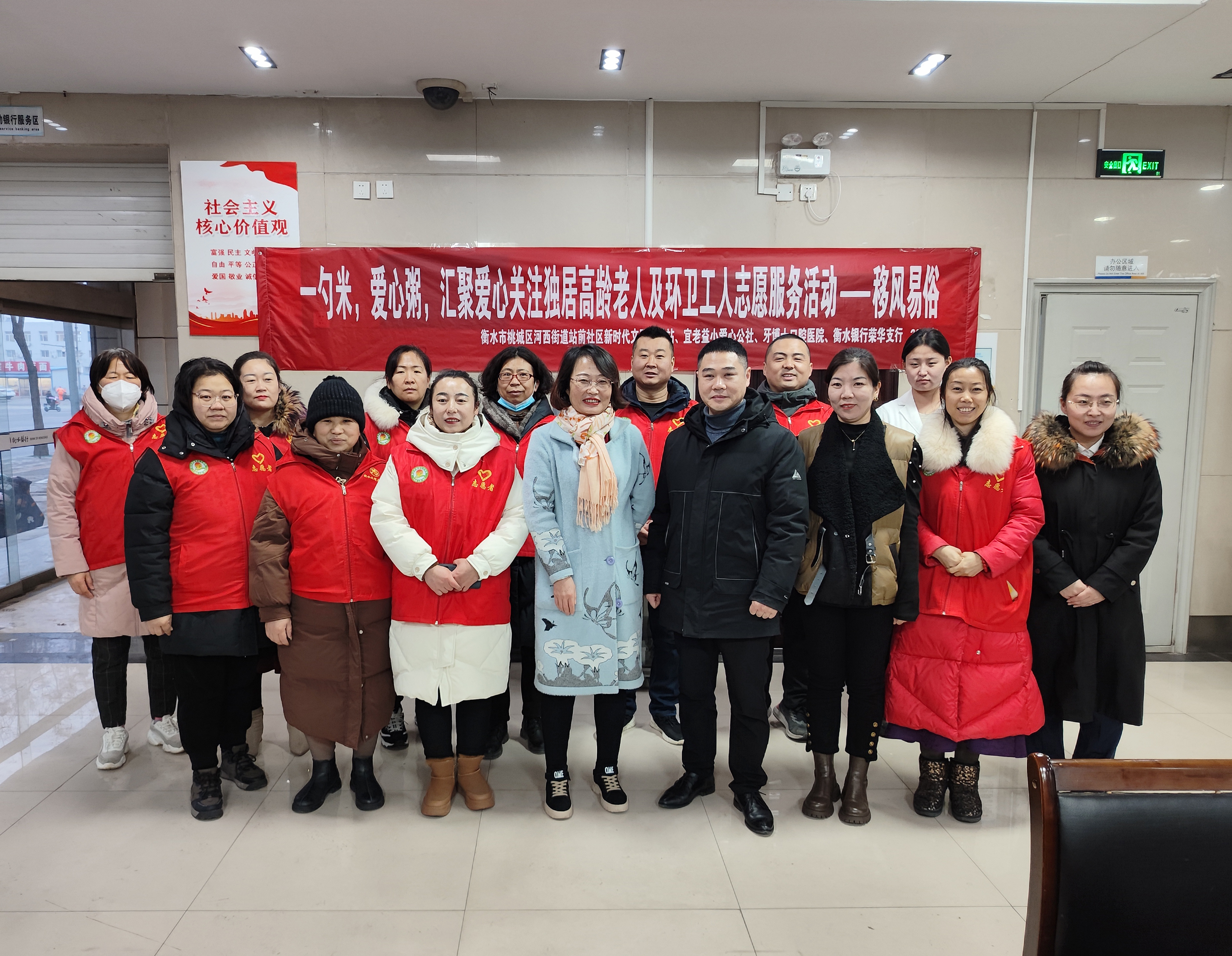 1月18日,阴历腊月初八。由桃城区站前社区、社区宜老益小爱心公社,联合衡水银行荣华支行、春晖志愿者服务队、牙博士口腔义诊团队共同开展了“一勺米,爱心粥”志愿服务活动,为环卫工人和社区独居老人们送上了暖心腊八粥。